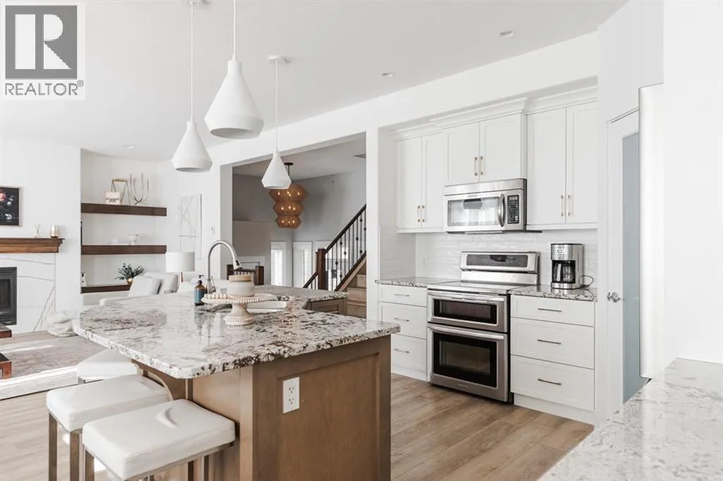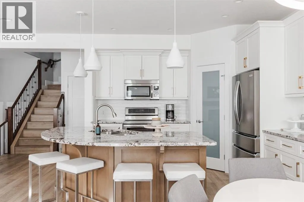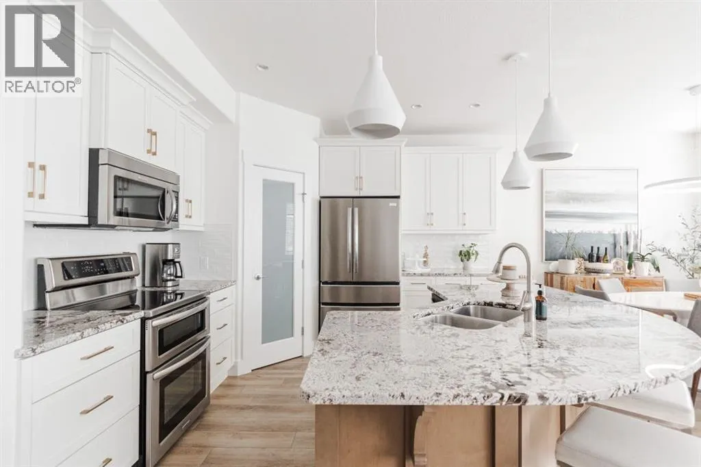 Welcome to 209 Pintail Place: Tucked into a quiet cul-de-sac in Eagle Ridge, this elegant home pairs timeless design with modern luxury. Featuring a heated Triple Car Garage, a New Custom Jos-Willâs Kitchen, and over 2,800 sq/ft of thoughtfully designed living space, every detail has been curated for both style and comfortâmaking this property a true standout.The wide pie-shaped lot offers privacy and versatility.The triple car garage is fully finished with insulation, heat, and painted interiors, providing the perfect space for your vehicles, recreational gear, or a home gym. A charming covered front porch sets the tone for the inviting, light-filled spaces that await inside.Step into a grand front entry with an oversized landing, natural light from three windows, and an overhead statement chandelier. The main living area unfolds just a few steps up, where wide plank luxury vinyl flooring in a soft white oak tone creates an airy, cohesive feel throughout the top two levels. The living room is anchored by a gas fireplace with a marble surround, flanked by custom wood built-ins that add warmth and refinement.The custom kitchen by Jos-Willâs is the heart of the home, blending classic white floor-to-ceiling cabinetry with a richly toned wood island and brushed gold hardware. High-end stainless steel appliances, modern pendant lighting, granite countertops, and a walk-in pantry complete the spaceâoffering both functionality and beauty. The adjacent dining area flows seamlessly to the back deck, where youâll find a tranquil outdoor retreat framed by beautiful gardens, a pergola, privacy wall, and additional yard space along the side.Upstairs, a generous bonus room with vaulted ceilings and a beautiful wallpaper feature wall provides a perfect second living area for family or gatherings. A private wing hosts two spacious bedrooms and a four-piece bathroom, while the primary suite is a calming haven featuring double door entry, a beaded chandelier, a walk-in closet, an d perfectly appointed five-piece ensuite with granite counters, a jet tub, and a glass-enclosed shower.The fully developed basement offers even more versatility with a wet bar and wine fridge, ideal for hosting or relaxing. Two additional bedrooms, a full bathroom, and a second laundry hookup make the lower level perfect for extended family or guestsâoffering comfort, privacy, and separate access through the garage.Move-in ready and meticulously maintained, this is a rare opportunity to own a high-end home in one of Fort McMurrayâs most sought-after neighbourhoodsâjust steps from schools, walking trails, restaurants, and more. Schedule your private tour today and experience the exceptional lifestyle this home has to offer. (id:27476)