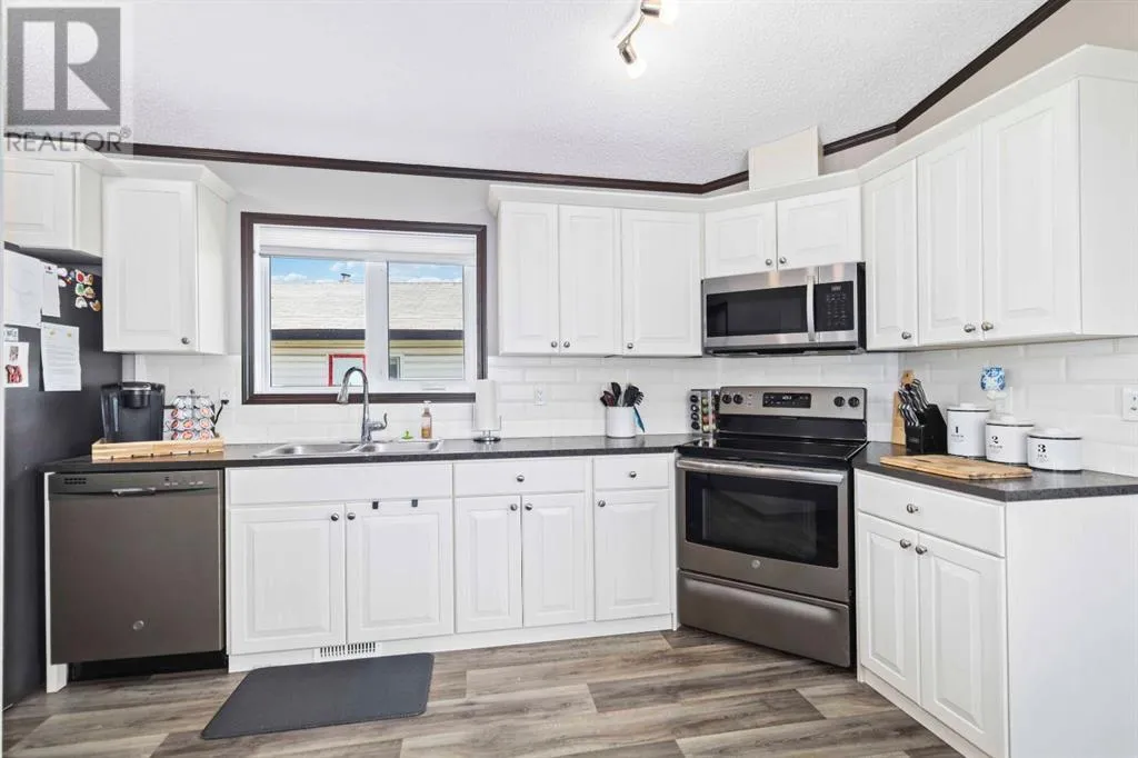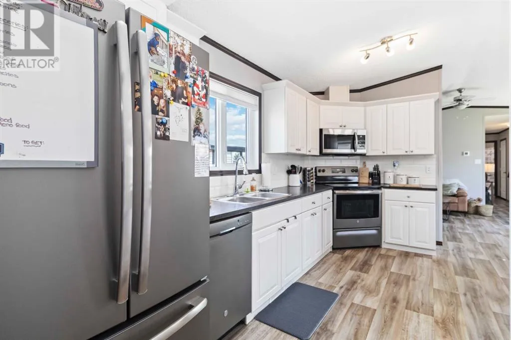 Welcome home to 161 Card Crescent: a beautifully maintained, turn-key home nestled in the heart of Timberlea. This 2018, 3-bedroom, 2-bathroom property boasts modern finishes, stylish upgrades, and an inviting layout that caters to both comfort and functionality.From the moment you arrive, the home makes a great first impression with its aesthetically appealing front exterior, paved double driveway, and double insulated front and back doors. Step inside to a bright and airy open-concept living space, enhanced by vaulted ceilings, oversized windows, and a sleek, modern kitchen featuring white cabinetry, stainless steel appliances, corner pantry, over-the-range microwave, and a spacious dining area that flows effortlessly into the cozy living room, ideal for entertaining or quiet nights in.The oversized primary suite is tucked away at the rear of the home, offering a tranquil retreat with a large walk-in closet and a luxurious 4-piece ensuite complete with a stand-up shower, relaxing oval soaker tub, and a generous vanity. Two additional bedrooms and a second full bathroom are located on the opposite end of the home, perfect for guests, family, or a home office setup.Other highlights include central A/C, a fully fenced private yard ideal for outdoor gatherings, and a 12x16 shed with a roll-up door for added storage.Location is key, just a 1 minute walk to Syncrude Athletic Park, where you'll find a waterpark, skateboard park, baseball diamonds, soccer fields, and a playground, making this the perfect spot for active families.If you're looking for a clean, stylish, and affordable home in one of Fort McMurrayâs most convenient areas, 161 Card Crescent checks all the boxes. Book your private tour today! (id:27476)