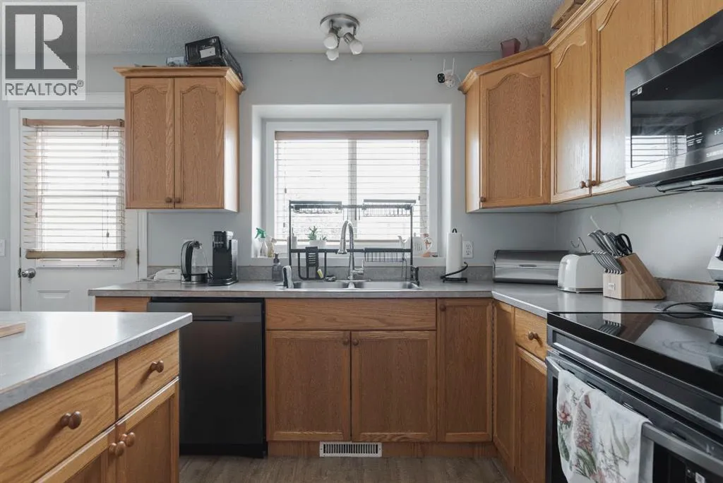 Welcome to this rare 7-bedroom gem in the heart of Timberlea! Situated on a corner lot, this spacious home offers incredible value with an attached garage, a large driveway for extra parking, and no carpetâjust beautiful laminate flooring throughout.Step inside to find two dining areas, an open-concept living room, and a functional kitchen layout perfect for families or entertaining. The main floor features three generous bedrooms, including a primary suite with a walk-in closet and a private ensuite bathroom.The fully developed basement offers four additional bedrooms, a huge rec room, and plenty of space for guests, hobbies, or rental potential.Enjoy outdoor living on the rear deck with a fenced yard, ideal for kids, pets, or summer BBQs. Located close to schools, parks, and all the essential amenities, this home has room for everyone and then some.Donât miss out on one of the few 7-bedroom homes in Timberleaâbook your private tour today! (id:27476)