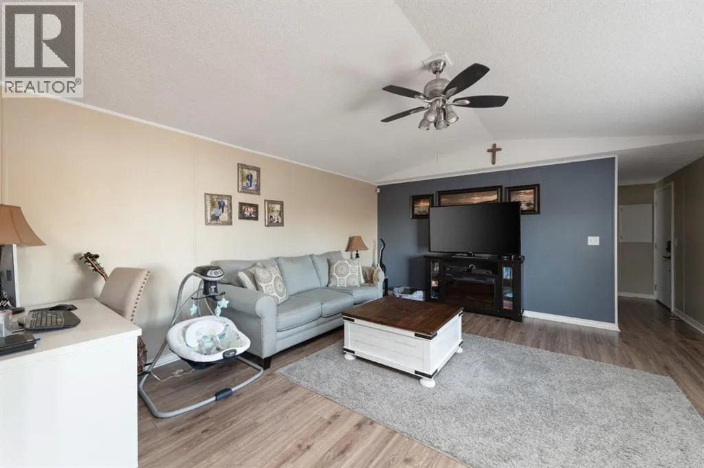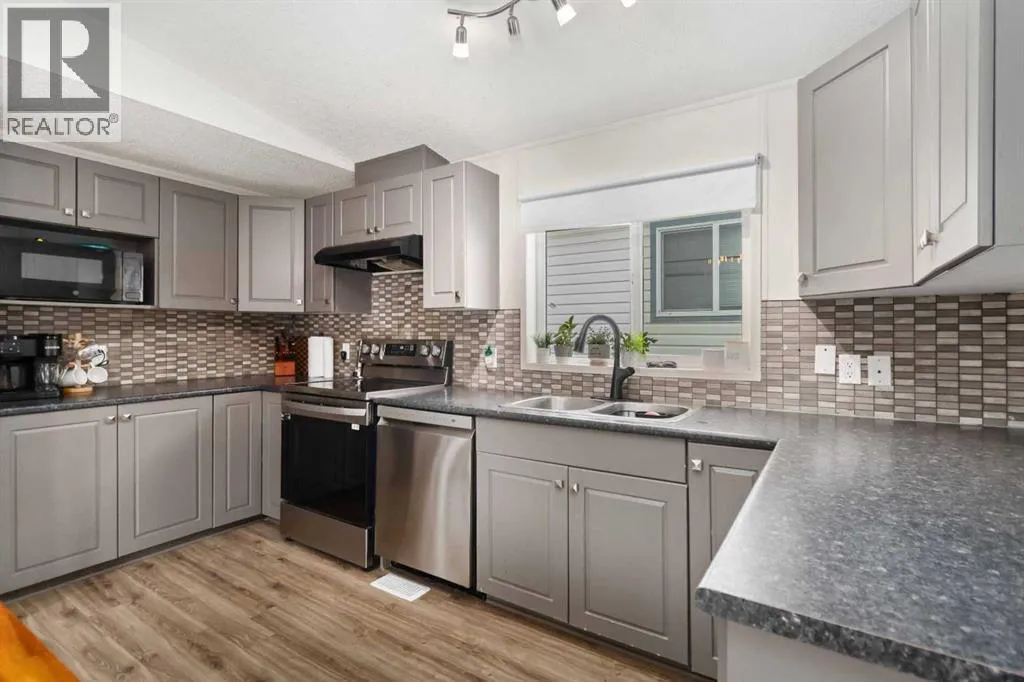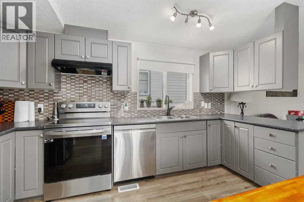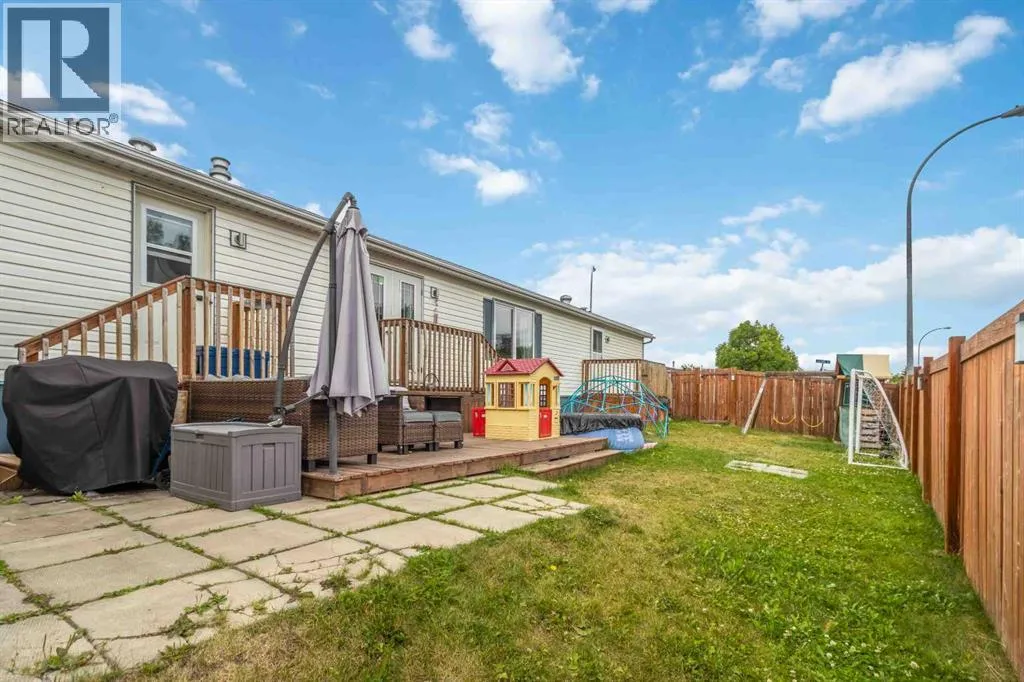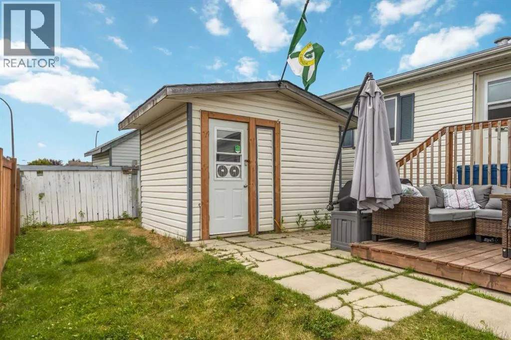 NEW, NEW AND MORE NEW ON THIS HOME WITH ALL THE HIGH TICKET ITEMS REPLACED SHINGLES, FURNACE, HOT WATER TANK, CENTRAL A/C, DECK AND FENCE! This gorgeous home, situated on a large corner lot with RV Parking has seen numerous renovations. Let's begin with the exterior: new shingles, new deck, and new fence. The yard is also fully fenced all the way around the property, providing a large yard, a spacious shed/man cave, and an additional garden shed. The front also features an extra wide driveway for lots of parking. Inside this extremely well-maintained home, you have all new doors, new trim, new flooring, both bathrooms have new vanities, and more. The layout offers an open-concept living area with large living room, a spacious refurbished kitchen with lots of cabinets and countertop space, and backsplash. The Master bedroom is a great size and features a full 4pc ensuite with a soaker tub. The other 2 bedrooms offer updated flooring. In addition to all these wonderful upgrades, you have new Central a/c(2020) and new furnace(2021), a Hot water tank (2023), and all updated light fixtures. This home is a pleasure to view and is move-in ready, and sellers are offering a credit to have flooring replaced in the primary bedroom. The location is excellent as you are within walking distance to Syncrude's athletics park that includes a water spray park and more. Call today for your personal tour. (id:27476)