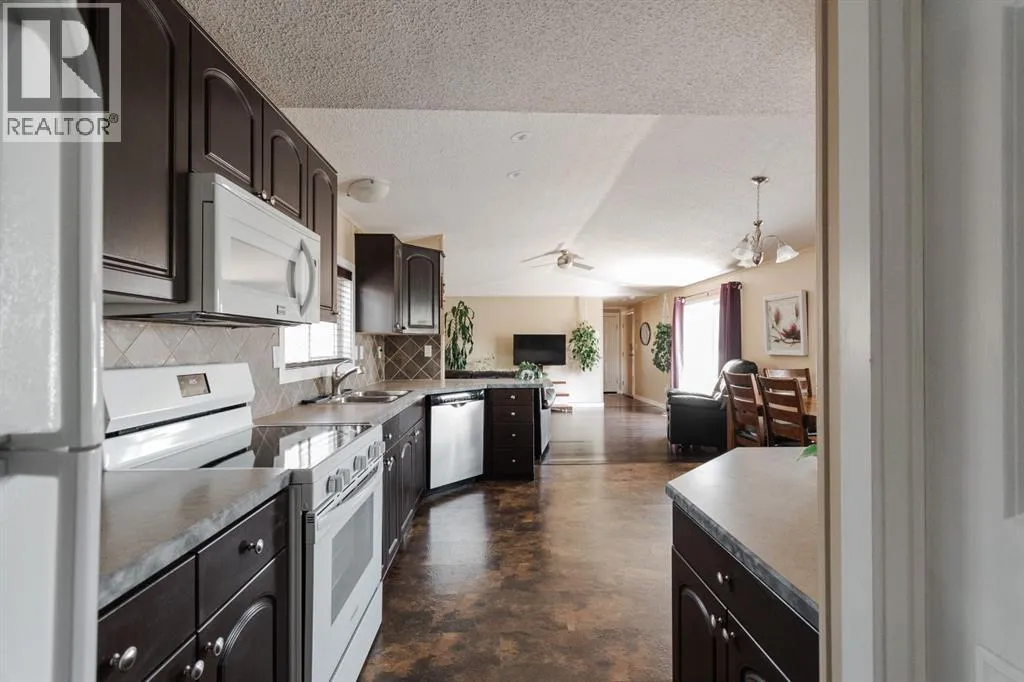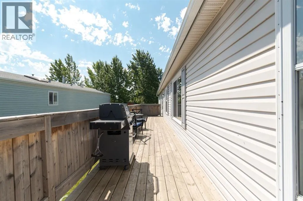 Welcome to 113 Mustang Road: Tucked into the equestrian community of Prairie Creek, this well-maintained and move-in ready detached home offers incredible value with no condo fees, peaceful greenbelt views, and direct access to tree-lined trails that surround the pond behind the home. Located just minutes from the airport, highway, stables, and bus stops, this home provides both convenience and a quiet, community-focused lifestyle.With updated shingles (2016) and siding (2009), plus a brand-new belly bag installed in 2023, this home has been lovingly cared for and is ready for its next owner. The double front driveway provides ample parking, and the wide-opening front fence allows for secure yard accessâperfect for storing recreational toys with peace of mind. The fully fenced yard is landscaped, offering both a garden shed and a quonset for sheltered storage, and the mature trees lining the back fence provide added beauty and shade.The spacious deck runs from front to back, with strawberry bushes beginning to peek out from underneathâadding to the charm of this outdoor space. Inside, the home feels warm and inviting, with refinished cabinetry in the kitchen, a brand-new stove, and ample counter and pantry storage. The open floor plan is filled with natural light and finished in neutral tones throughout.The primary suite is located at the back of the home for added privacy, featuring a large closet and an impressively spacious ensuite with a jetted tub, glass shower, water closet, and extended vanityâlarger than whatâs typically seen in similar homes. On the opposite end, you'll find two additional bedrooms and a four-piece main bathroom, with the back bedroom offering a generous footprint.Additional perks include central air conditioning, a BBQ gas line, and the bonus of being a completely pet- and smoke-free home, adding to its overall immaculate condition. Set in a friendly and peaceful neighbourhood, this property offers affordable, worry-free home ownership . Schedule your private showing today. (id:27476)