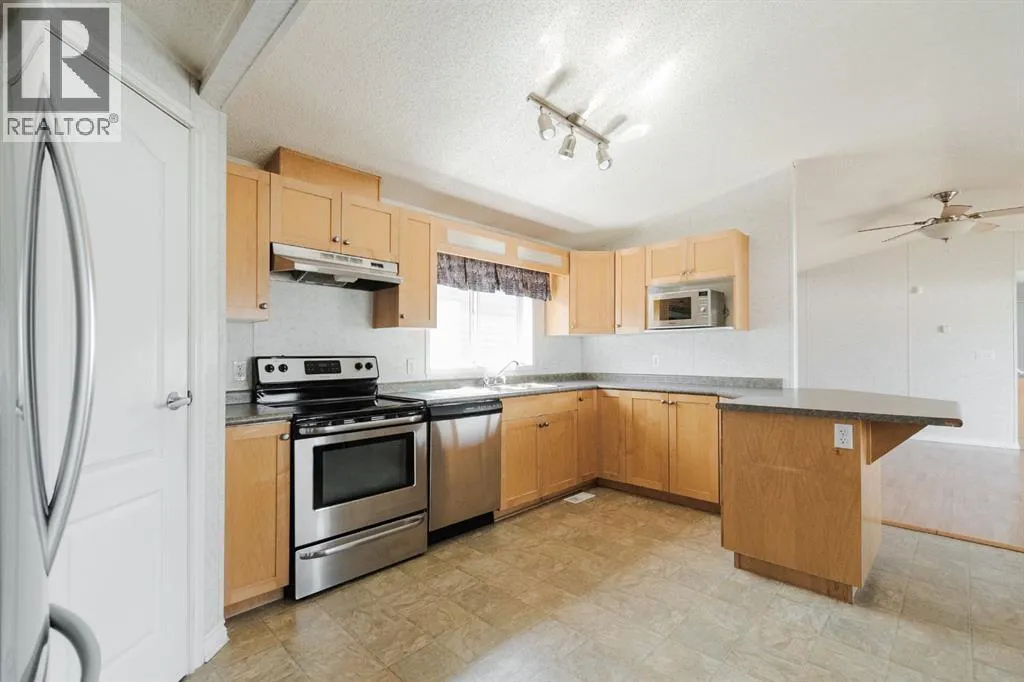Welcome to 116 Balsam Way: a meticulously maintained 1,500 sq./ft manufactured home tucked into a quiet, established Timberlea neighbourhood with NO CONDO FEES and a great sized lot with an oversized shed perfect for storage or your man cave offering exceptional value. This home is a perfect option for anyone seeking low-maintenance living, extra space, and room to store all the toys.The layout offers a spacious interior with laminate flooring throughout the main living spaces, a cozy gas fireplace in the living room and plenty of natural light. The kitchen includes stainless steel appliances, plenty of counter and storage space with a walk-in pantry, and a dedicated laundry room just off the back door for added convenience. The fridge was replaced in 2024 and the washer in 2025.One of the standout features of this home is the oversized primary bedroom, complete with a walk-in closet and an ensuite bathroom that includes a large soaker tub and a separate shower. On the opposite end of the home two additional bedrooms are found with a four piece bathroom that sits between them, both bedrooms generous in size with one having its own walk in closet. There is also a generous storage closet plus a separate coat closet at the front entry of the home, providing plenty of space to keep things organized.Outside, the oversized shed is outfitted with an overhead garage door, insulation, plywood finishing, full power, and an electric heaterâmaking it the ideal workshop or additional storage space. There's also an RV gate for secured parking or recreational vehicle storage, and central air conditioning to keep the home cool during the summer months.This home has clearly been loved and maintained with care and pride of ownership. If youâre searching for affordable living with space, parking, and privacy in a move-in ready homeâthis is it. (id:27476)