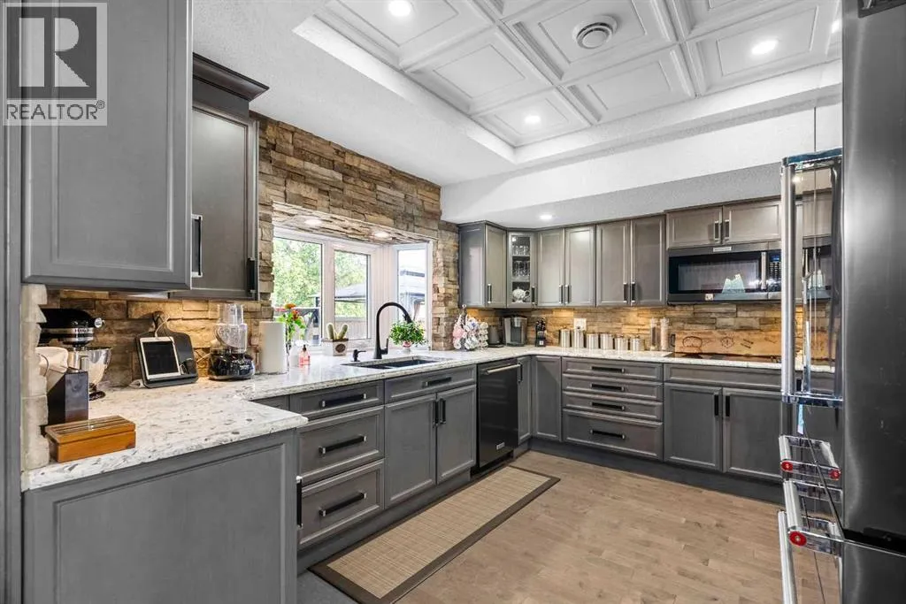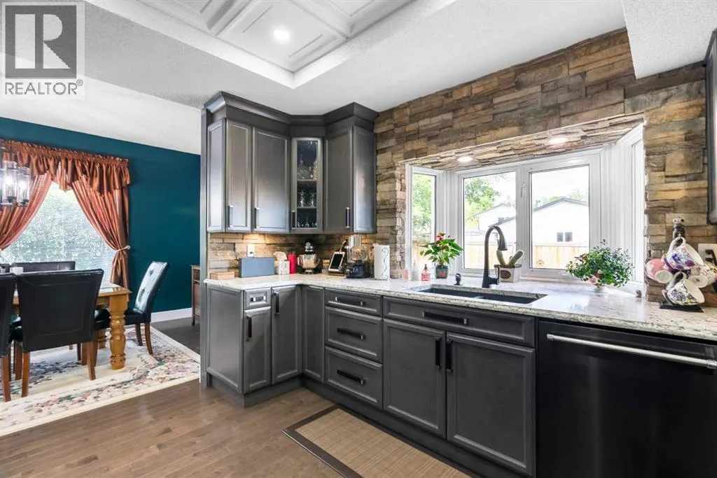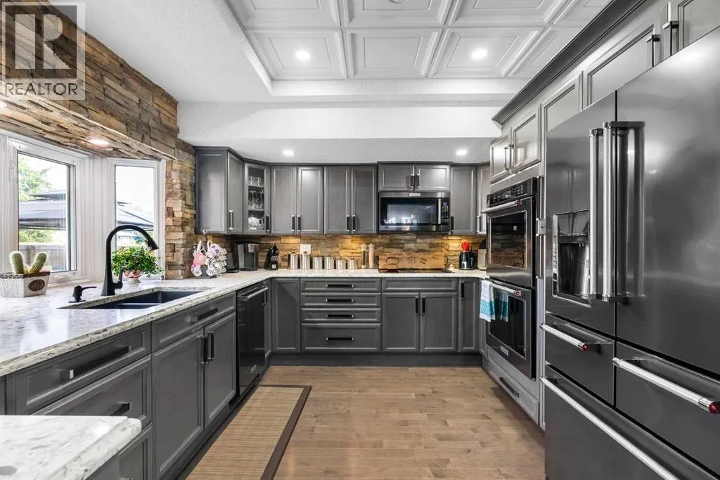 Welcome to 125 Whiteoak Garden! This stunning 5 bedrooms and 4 bathrooms family home located in Thickwood offers more than 3,400 sq ft of living space, a DOUBLE HEATED GARAGE, central air and a chef's DREAM KITCHEN. As you step on the front porch and into the main floor with hardwood throughout, you will be welcomed into a great living room with large windows that let plenty of natural light flow through the room. Towards the back of the home the dining room next to the impressive modern kitchen with more than enough quartz countertop and cabinetry, a gorgeous brick wall, double undermount sink, two ovens and a large refrigerator. Down the hall is a great family room with gas fireplace and double door to access the massive rear deck. To complete the main floor is the laundry room with more cabinets and a beautiful 5-piece bathroom with 2 sinks. On the upper floor with carpet flooring replaced 2 years ago is the exquisite primary bedroom with glass French doors, a 3-piece ensuite with jetted tub and a walk-in closet. Also on the upper floor are two good size bedrooms and a 3-piece bathroom. In the basement, you will find a large recreational room, two more bedrooms and a 3-piece bathroom. The lovely and peaceful backyard features a massive deck with gazebo and a brick patio with fire pit perfect for family and friends entertainment. At the back is also a shed for extra storage space. Walking distance from green space and trails. Shingles were replaced in 2017, siding done in 2018, basement furnace and hot water tank replaced in 2019, and all windows in garage, laundry and all upstairs replaced in 2018! Book your appointment today to have the chance to own this amazing home! (id:27476)