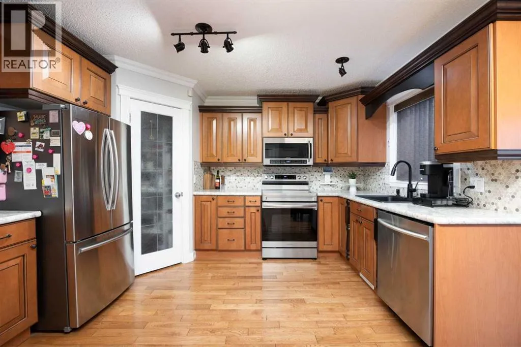 Welcome to 122 Rattlepan Creek Crescent! This well-maintained 4 bedrooms and 2.5 bathrooms family home offers 2,135 sq ft of living space, a HUGE 31x23 DEATCHED HEATED GARAGE built in 2010, driveway with 3 more parking spots and CENTRAL AIR CONDITIONING. As you step in the front door, you will be welcome into the bright living room with hardwood flooring and gas fireplace, next is the dining room and at the back is the large kitchen featuring plenty of wooden cabinetry, a corner panty and a breakfast nook next to the sliding doors for easy access to the rear deck. To complete the main floor is 2-piece bathroom with laundry. On the upper level, you will find 2 good size bedrooms and the large primary bedroom with a beautiful wood panel wall, a huge walk-in-closet and direct access to the main 4-piece bathroom. In the basement is a family room, one more bedroom, a 3-piece bathroom, a storage room and a laundry room with second set of appliances and a door to access the yard. The backyard has a large deck perfect for entertainment and the huge garage has more than enough space for extra storage. Located in a quiet, family friendly neighborhood, close to school, playgrounds and walking trails. Call today to book your appointment to view this beautiful family home! (id:27476)
