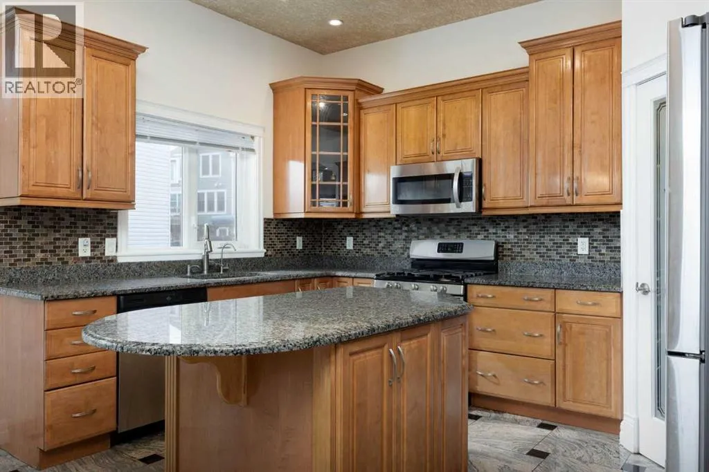 A RARE FIND! Amazing opportunity to own this stunning custom built executive style Raised Modified Bungalow boasting 3872 SF of total living space! This home is PERFECT for the growing family and dressed up to impress the most decerning of buyers. There are 2 primary bedrooms, each bedroom has their own bathroom access, with custom high end showers, whirpool/jetted tub dual sinks and more! Surrounded with coffered high ceilings, recessed lighting, crown moldings, hardwood floor and gleaming porcelain tiles, archways and pillars, and a balcony to sit and enjoy your morning coffee. The main floor greets you with a spacious foyer leading to a great room with two way fireplace connecting the dining room and kitchen seamlessly together. The walk in pantry is massive with tons of storage. The kitchen is a chef's delight with a big granite island, with maple cabinets and birch boxes, tons of storage and ample countertop space. There are garden doors leading to your corner lot to sit out and enjoy your quiet time with family and friends. The main floor features 2 big bedrooms, 2 full bathrooms and a media room (which could be a flex room) 'the primary bedroom has its own floor with a beautiful walk in closet, 5pc spa style bathroom. The main floor to the garage area provides a mud room with laundry and access to the basement which has access to a family room, bathroom, sleeping area and kitchenette, which is perfect for extended family or rental potential. PLUS A SEPARATE Entrance leads to a 2 bedroom, 1 bath and full kitchen and living area perfect for the savvy buyer. Outside will discover extra parking on the side for the tenant, an oversized double garage, stucco exterior and aggregate expose walkway and driveway. All sitting on one of the best streets in Fort McMurray Wild Rose! If you are looking for a home that has all the bells and whistles, a potential mortgage helper and tons of space for the growing family including a main floor bedroom setup for ex tended family, a BIG garage, two driveways, then come check this gorgeous MOVE IN READY home today! Call us and start packing! (id:27476)