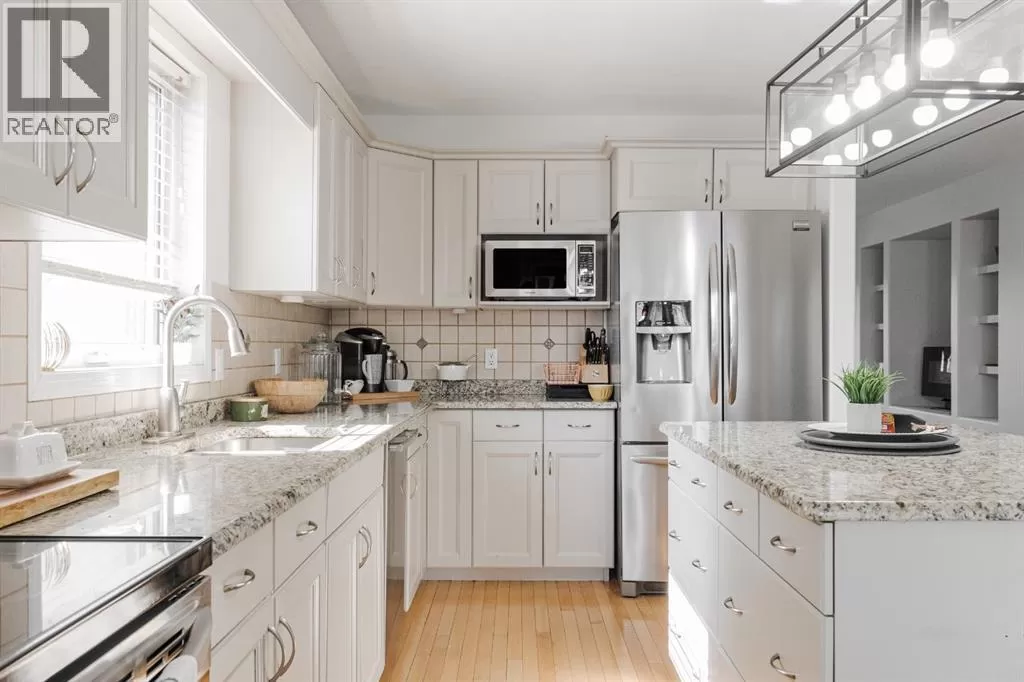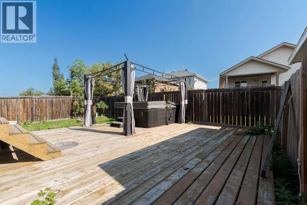 Welcome to 236 Crown Creek Lane: a beautifully maintained raised bungalow in the heart of Timberlea. Tucked away on a quiet street and just steps from schools, parks, and shopping, this home is move-in ready and available for immediate possession. From the heated attached double garage with sleek epoxy floors to the charming covered front porch and bold green-and-black exterior, curb appeal and pride of ownership shine through the moment you arrive.Step inside to a bright and welcoming main floor where hardwood floors flow through the living room, complete with built-in shelving around the TV for both style and function. The eat-in kitchen blends warmth with modern touches, featuring freshly painted cabinets, granite counters, stainless steel appliances, and updated lighting that adds the perfect finishing touch. The main level offers three spacious bedrooms and two full bathrooms, including a primary retreat with a walk-in closet and ensuite.Designed for both relaxation and entertaining, the backyard is a true highlight with its two-tiered deck, newer hot tub and gazebo, and a cozy fire pit space for gathering with friends and family.The fully developed lower level brings even more to love with a large in-law suite and private side entry. With two oversized bedrooms, a den, four-piece bathroom, its own kitchen, separate laundry, and generous living space, itâs the perfect setup for extended family, guests, or growing households needing flexibility.Combining comfort, versatility, and location, this Timberlea home is the total package. Stylish, functional, and ready for its next chapter. (id:27476)