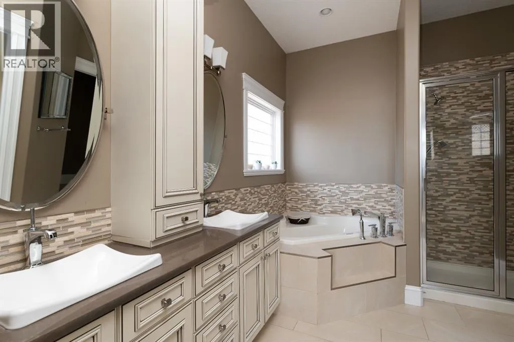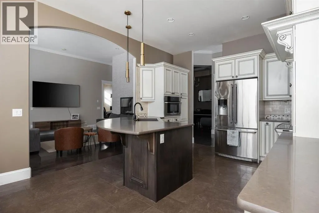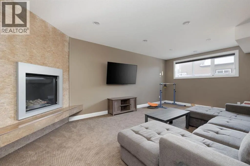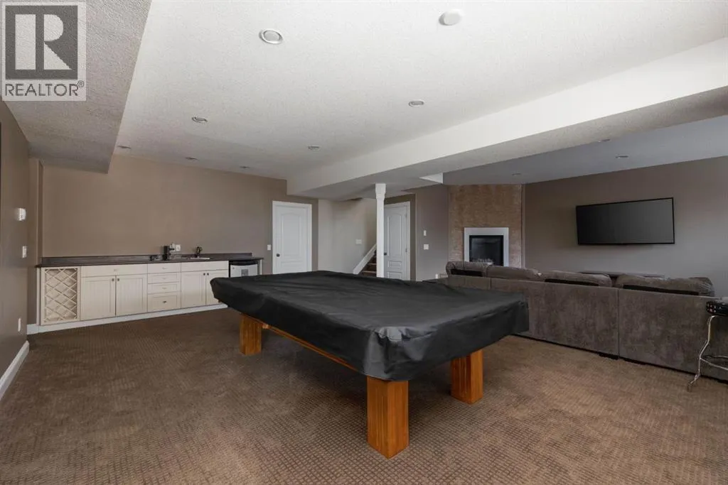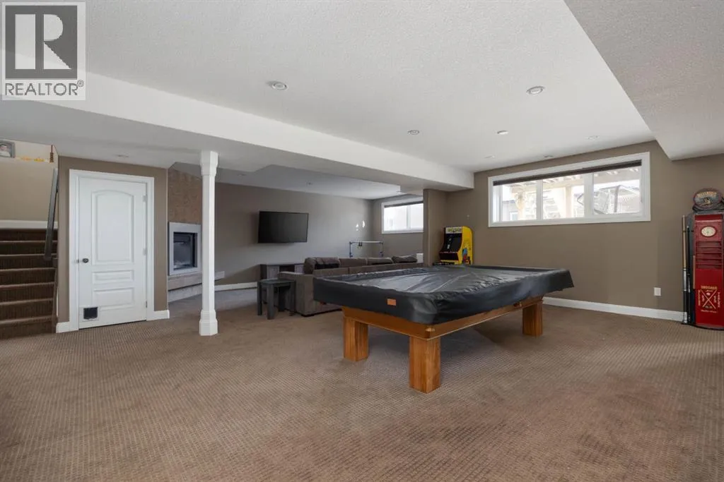Welcome to your dream home! This EXECUTIVE STYLE BUNGALOW is the perfect blend of luxury and comfort, situated on a quiet cul-de-sac right next to the breathtaking Birchwood Trails. With over 3700 sqft of living space, this home is the ultimate family retreat. As you step inside, be prepared to be wowed by the unique floor plan that exudes grandeur, with soaring 12 foot ceilings and a stunning 2-way fireplace featuring a floor-to-ceiling rock wall. The main floor is designed to impress with a flex room that doubles as a home office, a 3rd bedroom or a space for your family's imagination to run wild, a formal dining room, a cozy living room, and a spacious eat-in kitchen. The kitchen is a chef's delight, boasting 2-tone cabinetry, quartz countertops, a sil-granite sink, spice drawers, stainless steel appliances, and an eat-up bar. The main floor also features 2 generously sized bedrooms, including a primary suite with a gorgeous ensuite that offers dual sinks, an air jet tub, a tiled shower, and a walk-in closet. The quality craftsmanship is evident throughout the home, with hardi-plank siding, supersized windows, crown mouldings, top-down bottom-up blinds, and classic archways that add a timeless, elegant touch. The basement is an entertainer's paradise, featuring a family games room with a cozy fireplace, large above-ground windows, a wet bar, and a pool table. The basement also offers 3 spacious bedrooms, a full bathroom, a gym room, and plenty of closet space for storage. The backyard is perfect for hosting summer barbecues or just lounging with a raised deck with low maintenance composite decking and a large ground-level stone patio. The pie-shaped lot offers privacy with tall columnar aspens and a stone fire pit patio in the large side yard. Living next to the Birchwood Trails means you can enjoy year-round outdoor activities like cross country skiing, biking, and hiking. The 21' x 27' attached heated garage features built-in loft storage and direct access to t he home through the mudroom. This home is perfect for families, located in a cul-de-sac away from the hustle and bustle of the city, with approximately 40 young kids living within 1 block of the home and less than 1 km walking distance from St. Kateri and Walter Gladys elementary schools. Don't miss your chance to make this executive bungalow your forever home! (id:27476)