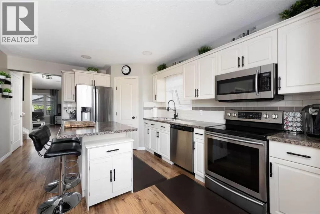 Welcome to 225 Hawthorn Way! This well maintained 5 bedrooms and 3.5 bathrooms perfect for growing families offers 2,500 sq ft of living space, updated bathrooms fixtures, new light fixtures, fresh paint, new hot water tank (2022), new trim and interior doors. As you walk in the front door, you will be welcomed into a bright and charming living room that flows seamlessly into the dining room and kitchen featuring a corner pantry, an island with breakfast bar, refinished white cabinetry, sleek black hardware and door for direct access to the rear deck. To complete the main floor is a 2-piece bathroom with laundry. On the upper floor, you will find the spacious primary bedroom with walk-in closet and 3-piece bathroom, 2 good size bedrooms and a 4-piece bathroom. The fully finished basement has 2 more bedrooms, 3-piece bathrooms and a large 15x14 storage room. The fully fenced yard has a gate to access the back lane, a raised garden bed and a large deck next to a fire pit perfect for summer entertainment. The backyard has also enough space to build a garage. Book your appointment today! (id:27476)