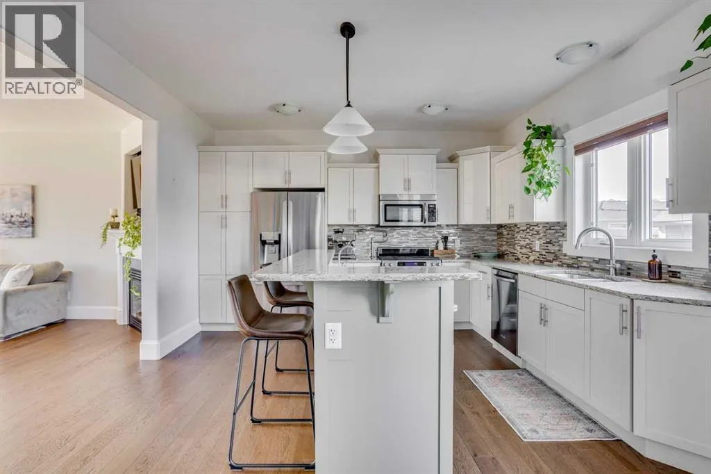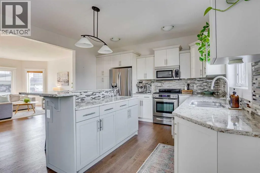Immaculate Condition! No Carpet! Legal 1-Bedroom Suite! Welcome to 136 Falcon Drive â a beautifully maintained 2-storey home located directly across from the serene Falcon Green. This property offers a perfect blend of functionality and elegant design, making it ideal for families or an investor. Step inside and be greeted by a spacious front foyer with high ceilings and abundant natural light. The open-concept main floor is designed for comfort and practicality, featuring main floor laundry, two backyard access points (from the mudroom and kitchen), and a stylish gas fireplace in the generously sized living room. The chefâs kitchen is equipped with stainless steel appliances, two sinks, and ample cabinet and counter space, all while offering a clear view of the fully fenced and landscaped backyard. Upstairs, youâll find three large bedrooms, each with plenty of closet space. The primary suite is a true retreat, complete with a recessed ceiling, walk-in closet, two additional closets, and a luxurious ensuite featuring dual sinks, jetted tub, and shower. The basement is fully permitted for a legal 1-bedroom suite â perfect for rental income or extended family. It includes a large living room, full bathroom, spacious bedroom, and storage area, but can also serve as an excellent rec space. Enjoy outdoor living on the two-tiered deck with natural gas BBQ hookup, overlooking the private, great sized yard. Recent Updates Include: New hardwood flooring (2023) â NO carpet throughout | Fresh interior paint (2022) | Luxury vinyl plank in basement (2022) | New fridge (2023) | Main floor new washer & dryer (2025) | Central A/C.This move-in ready home offers comfort, style, and income potential in one of the area's most desirable locations. Call today to book your private showing! (id:27476)