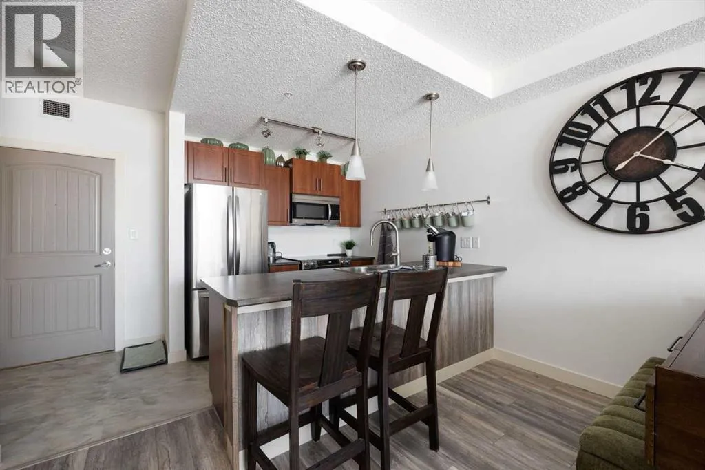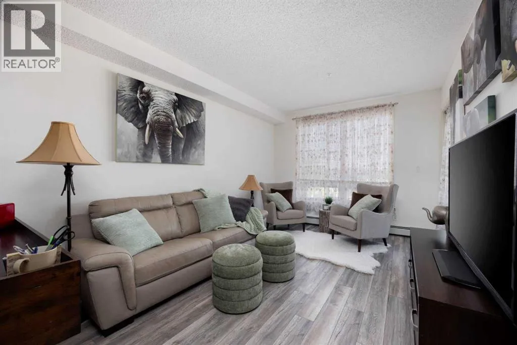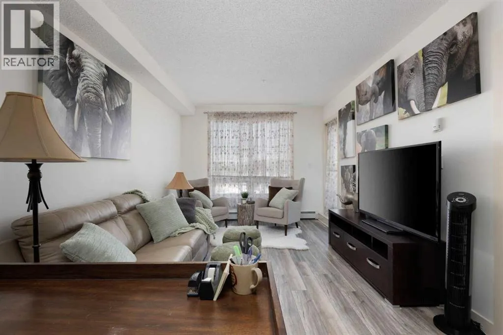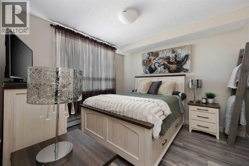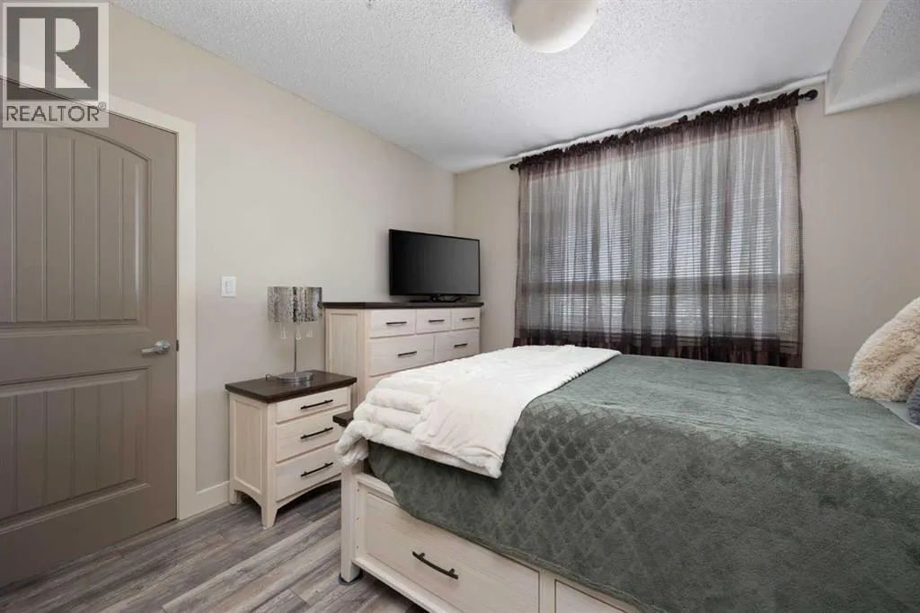 Step inside this Eagle Ridge gem and youâll instantly feel like youâve been dropped into the pages of a home design magazine. From the perfectly styled living room to the custom closet system that Marie Kondo would approve of; everything you see stays. Yes, that means itâs fully furnished and turn-key!!This freshly painted, one-bedroom condo has brand-new laminate and vinyl plank floors underfoot, stainless steel appliances (induction stove) in the kitchen, and a covered balcony thatâs just begging for sunrise coffees or northern-lights spotting. Northeast exposure keeps things bright without ever roasting you out in the summer months.Because the building is fully concrete, youâll appreciate just how quiet your new home is; ideal for commuters craving peace after a long shift, executives who donât want to hear a peep between Zoom calls, or first-time buyers who love stylish serenity. Investors, youâll love that itâs an instant turn-key rental.The primary bedroom is as cozy as it is practical, with a walk-through closet complete with custom organizers leading into the bathroom. And yes, thereâs even in-suite laundry; no more hauling baskets around.Outdoor enthusiasts can rejoice, youâre steps from the Birchwood Trails, a playground in the complex, and all the amenities Eagle Ridge is famous for (Restaurants, Bar, Movie Theatre, Bowling, and More!). Plus, the condo comes with a titled parking stall and a titled storage unit; bonus points for convenience.So whether youâre dreaming of a chic starter home, a low-maintenance commuter pad, or an income-ready investment, this unit delivers. Just bring yourself - everything else is already here waiting. (id:27476)