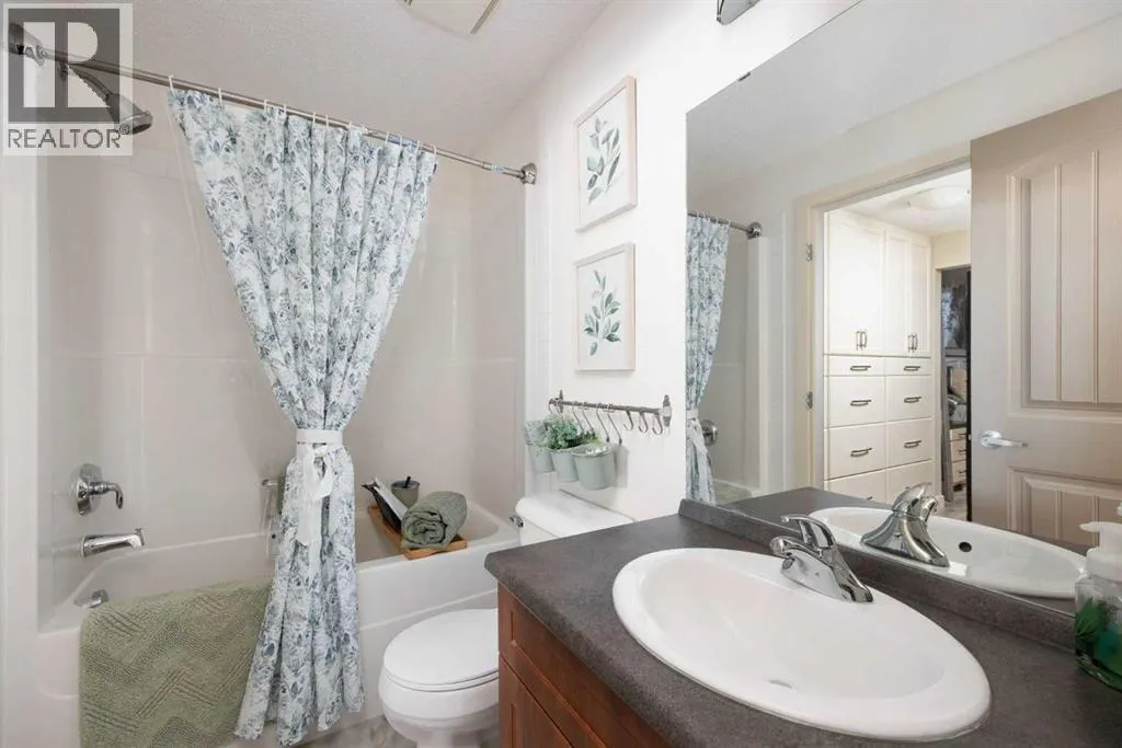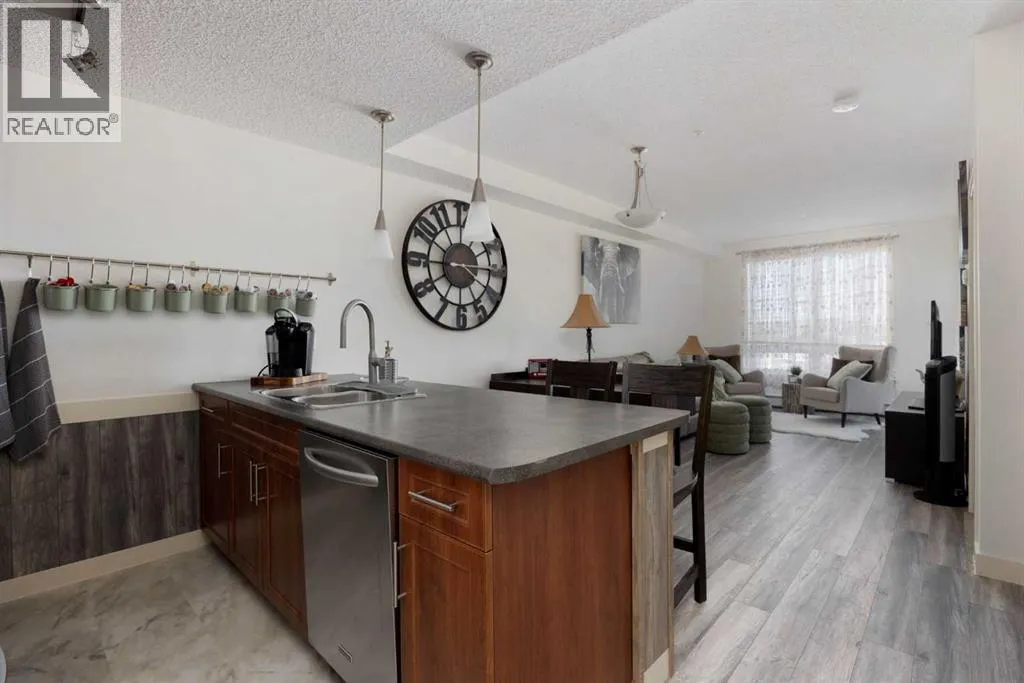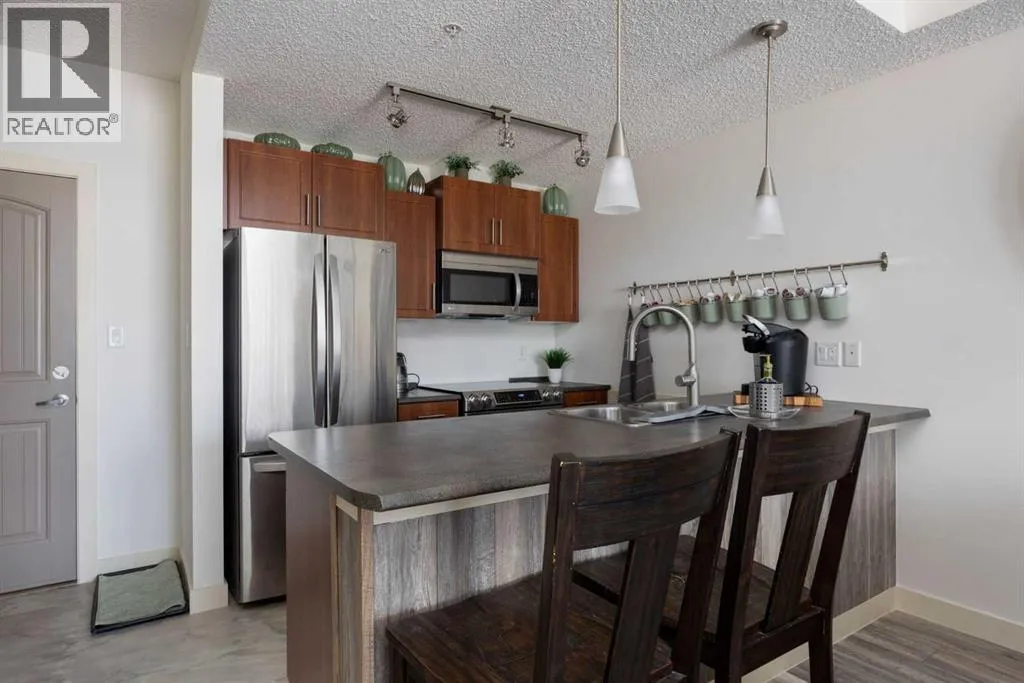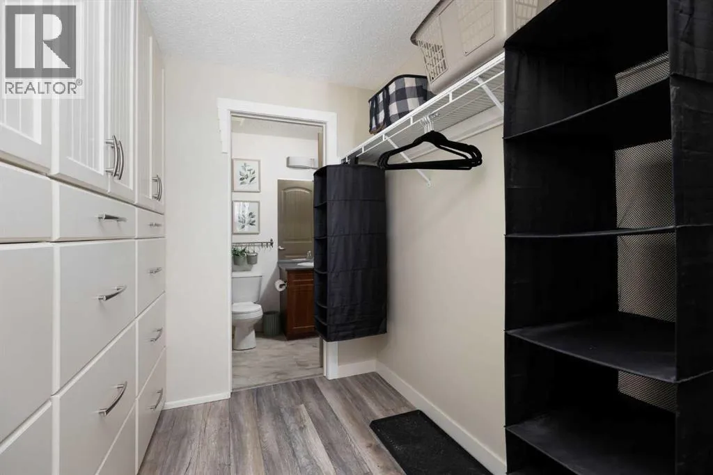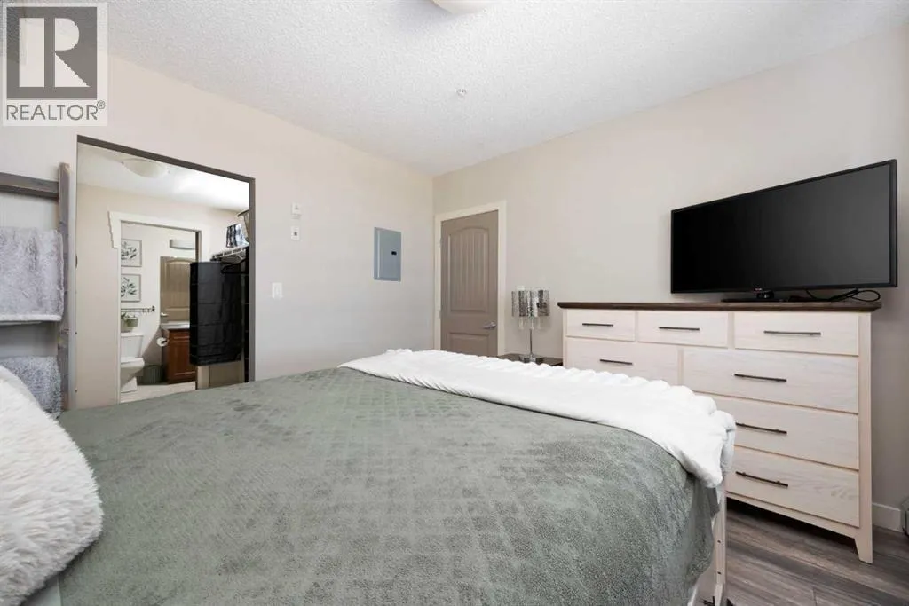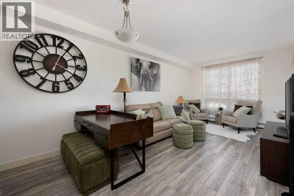 Step inside this Eagle Ridge gem and youâll instantly feel like youâve been dropped into the pages of a home design magazine. From the perfectly styled living room to the custom closet system that Marie Kondo would approve of; everything you see stays. Yes, that means itâs fully furnished and turn-key!!This freshly painted, one-bedroom condo has brand-new laminate and vinyl plank floors underfoot, stainless steel appliances (induction stove) in the kitchen, and a covered balcony thatâs just begging for sunrise coffees or northern-lights spotting. Northeast exposure keeps things bright without ever roasting you out in the summer months.Because the building is fully concrete, youâll appreciate just how quiet your new home is; ideal for commuters craving peace after a long shift, executives who donât want to hear a peep between Zoom calls, or first-time buyers who love stylish serenity. Investors, youâll love that itâs an instant turn-key rental.The primary bedroom is as cozy as it is practical, with a walk-through closet complete with custom organizers leading into the bathroom. And yes, thereâs even in-suite laundry; no more hauling baskets around.Outdoor enthusiasts can rejoice, youâre steps from the Birchwood Trails, a playground in the complex, and all the amenities Eagle Ridge is famous for (Restaurants, Bar, Movie Theatre, Bowling, and More!). Plus, the condo comes with a titled parking stall and a titled storage unit; bonus points for convenience.So whether youâre dreaming of a chic starter home, a low-maintenance commuter pad, or an income-ready investment, this unit delivers. Just bring yourself - everything else is already here waiting. (id:27476)