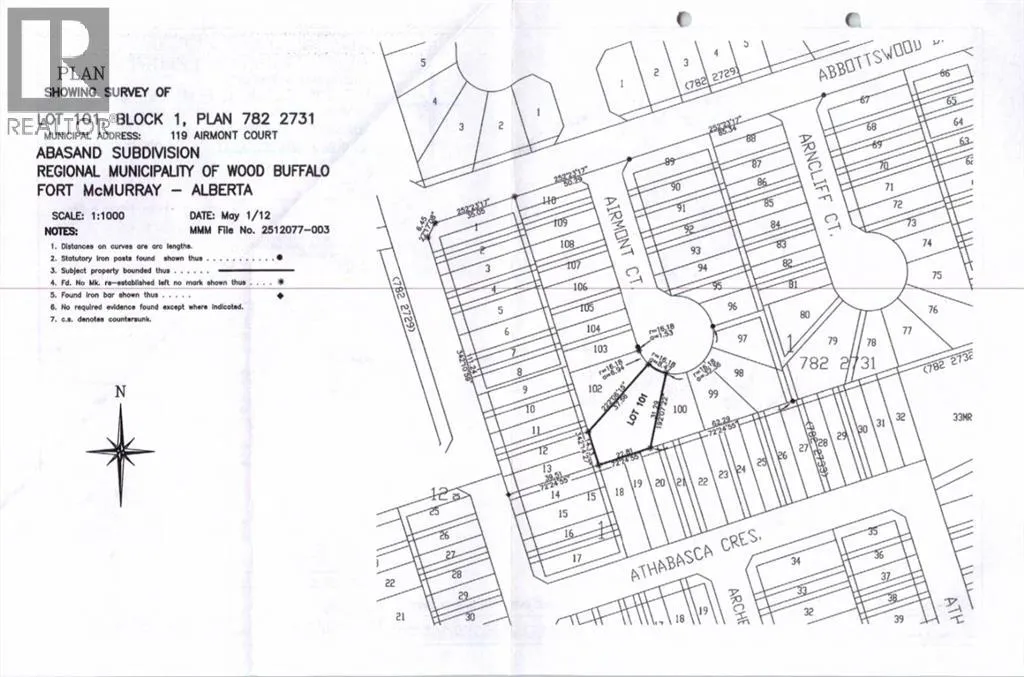 PRIME DEVELOPMENT OPPORTUNITY IN ABASAND! Welcome to 119 Airmont Court, a spacious 7,900 sq.ft. pie shaped lot tucked into a quiet cul de sac. Zoned R1S, this property offers outstanding flexibility. Build your dream single family home, design a duplex, or incorporate an income producing suite. The generous size allows room for RV parking, an oversized garage, or a large yard to suit your lifestyle. Location is everything, and this lot delivers: just minutes to downtown and the hospital, while within walking distance to schools, parks, trails, and transit. Whether youâre a first time buyer, investor, or planning your forever home, this lot offers strong value and long term potential in one of Fort McMurrayâs most desirable communities. Opportunities like this donât come often. Secure your lot and start planning your dream home today! Contact us now for more details or to explore the possibilities. (id:27476)