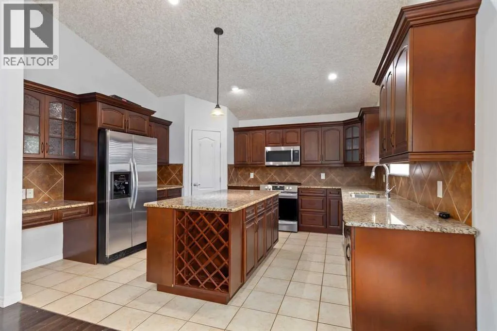 MASSIVE MODIFIED BILEVEL WITH OVR 3000 SQ FT OF LIVING SPACE WITH A SEPARATE ENTRANCE AND FRESHLEY PAINTED. This 5 BEDROOM 3 FULL BATHROOM HOME OFFERS SPACE GALORE! This layout is one of my favorites as it offers a large front entry way that leads to your upper or lower level. Take the upper-level staircase and take note of the VAULTED CEILINGS in the Great room finished with hardwood floors and gas fireplace and mantle. The kitchen offers enough room for the whole to cook together. It features GRANITE COUNTER TOPS, TONS OF CABINETS, PANTRY, BUILT IN WINE RACK and a LARGE ISLAND and Stainless-steel appliances. The oversized dining nook features vaulted ceilings and garden doors that lead you to your large BBQ deck. The main level continues with hardwood floors in every room, and a main floor 4 pc bathroom. The Primary Bedroom is a WOW, because every space in this room is HUGE, including the bedroom area, WALK IN CLOSET, and full ensuite that features 2 vanities one sink area and other your makeup area. In addition, there is a jetted tub and stand-up shower. The main level is complete with a laundry room. The Lower level is just under 1200 sq ft on its own and can be a perfect space for family and friends to gather with a large family room and high ceilings and large above ground windows. Or this space can BE A illegal suite as it includes a kitchenette, in-suite laundry and 2 great-size bedrooms. The basement is roughed in for in-floor heat. The exterior of the home offers loads of parking, a fully fenced and landscaped yard featuring maintenance free fencing. Added bonus is this home has FRONT AND REAR ACCESS, a major plus for those who want direct access to the rear fencing to park your trailer and Toys. The front access offers a large exposed aggregate driveway. This home is situated in a fantastic neighborhood across from the GREENBELT and is in walking distance to schools, parks, shopping and more. Call today for your personal tour! (id:27476)