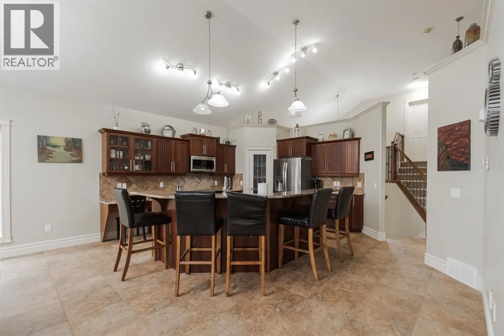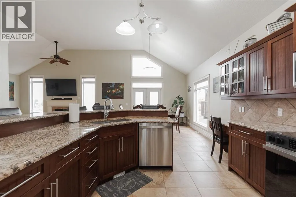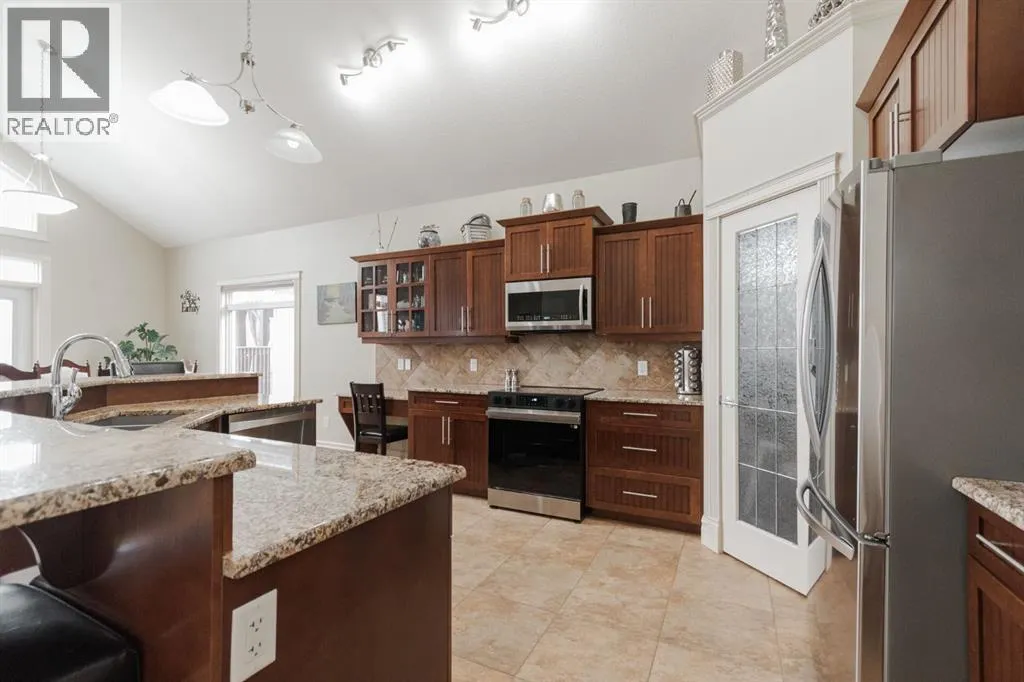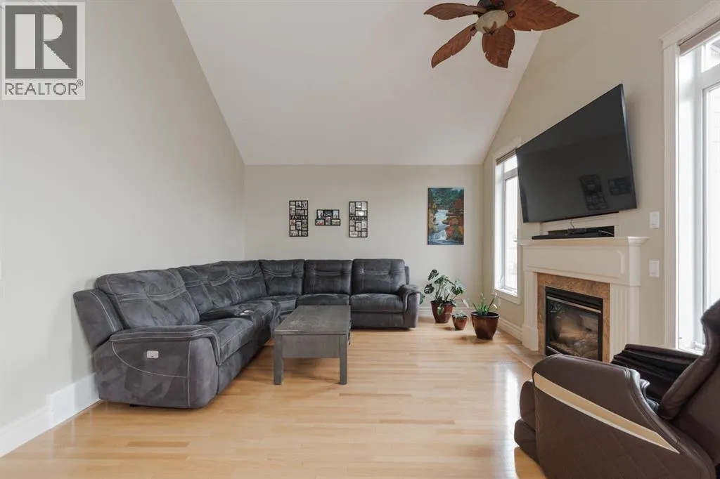 Welcome to 403 Falcon Drive: a beautifully maintained modified bi-level backing onto incredible green space and amazing tree lined views with a legal walk-out basement suite and a garage that will impress. Built in 2009 and cared for by the same owner for the past six years, this home is immaculate inside and out, with no kids or pets ever living here.The curb appeal starts with an exposed aggregate driveway and attached 24x26 double car garage with 10 ft ceilings, epoxy floors, LED lighting, hot and cold taps, and plenty of included cabinetry â a dream set up for storage, hobbies or the perfect man cave.Step inside and youâre welcomed into a bright main floor with vaulted ceilings, hardwood floors, and a gas fireplace in the living room. The kitchen is timeless with granite counters, a corner pantry, built-in desk, tile flooring, and newer appliances including a fridge (2024) and a brand new stove (2025). Up-down blinds add function, and garden doors lead you to the back dura deck, newly upgraded in 2025 with a liquid rubber coating and glass railings. Complete with a gas line for your BBQ, the deck overlooks the fully fenced yard and beautiful green space and walking trails behind, one of the most beautiful views in Fort McMurray.The main level offers two bedrooms with immaculate carpet, plus a full bathroom that sits in-between. Up a short flight of stairs, the private and very spacious primary suite awaits with a walk-in closet and ensuite.Downstairs, the walk-out basement is bright, spacious and very impressive featuring a legal suite with high ceilings, an abundance of natural light, tile and luxury vinyl plank flooring, and a Napoleon fireplace that adds warmth and style. The kitchen offers a large eat-up island, stainless steel appliances (fridge 6 years old), and plenty of storage. A full bathroom with a jetted tub and in-suite laundry complete the space, making it ideal for rental income or extended family.Additional features include central A/C, in-f loor heat in both the basement and garage, hot water on demand and an HRV system.Back outside, the yard is a mix of grass and rock landscaping with direct access to the greenbelt behind - the perfect blend of low maintenance and natural beauty.403 Falcon Drive is move-in ready and offers comfort, function, and income potential all in one. Schedule your private tour today. (id:27476)