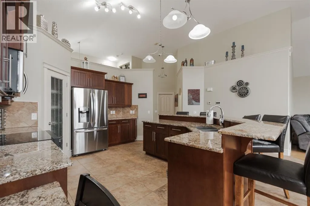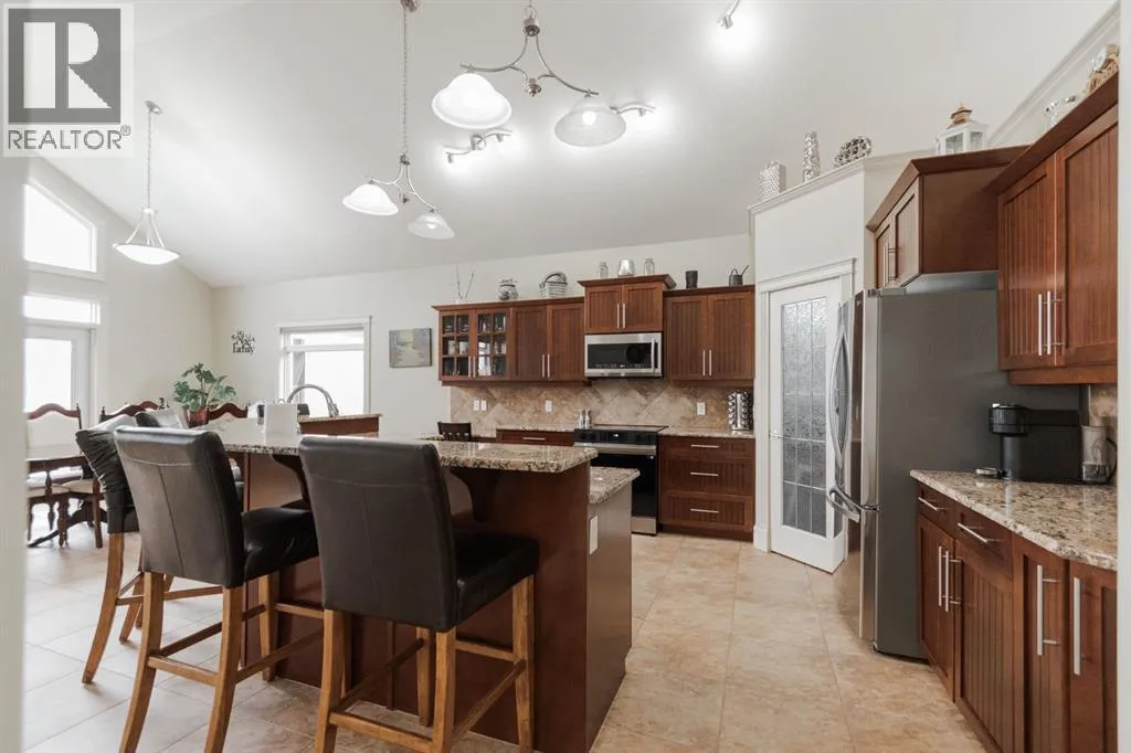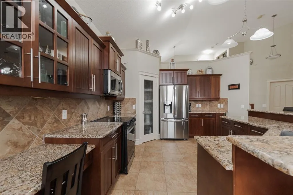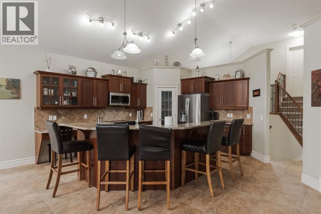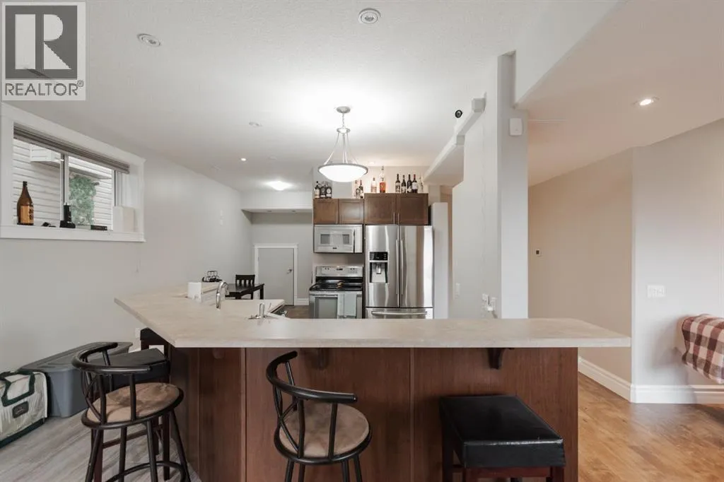 Welcome to 403 Falcon Drive: a beautifully maintained modified bi-level backing onto incredible green space and amazing tree lined views with a legal walk-out basement suite and a garage that will impress. Built in 2009 and cared for by the same owner for the past six years, this home is immaculate inside and out, with no kids or pets ever living here.The curb appeal starts with an exposed aggregate driveway and attached 24x26 double car garage with 10 ft ceilings, epoxy floors, LED lighting, hot and cold taps, and plenty of included cabinetry â a dream set up for storage, hobbies or the perfect man cave.Step inside and youâre welcomed into a bright main floor with vaulted ceilings, hardwood floors, and a gas fireplace in the living room. The kitchen is timeless with granite counters, a corner pantry, built-in desk, tile flooring, and newer appliances including a fridge (2024) and a brand new stove (2025). Up-down blinds add function, and garden doors lead you to the back dura deck, newly upgraded in 2025 with a liquid rubber coating and glass railings. Complete with a gas line for your BBQ, the deck overlooks the fully fenced yard and beautiful green space and walking trails behind, one of the most beautiful views in Fort McMurray.The main level offers two bedrooms with immaculate carpet, plus a full bathroom that sits in-between. Up a short flight of stairs, the private and very spacious primary suite awaits with a walk-in closet and ensuite.Downstairs, the walk-out basement is bright, spacious and very impressive featuring a legal suite with high ceilings, an abundance of natural light, tile and luxury vinyl plank flooring, and a Napoleon fireplace that adds warmth and style. The kitchen offers a large eat-up island, stainless steel appliances (fridge 6 years old), and plenty of storage. A full bathroom with a jetted tub and in-suite laundry complete the space, making it ideal for rental income or extended family.Additional features include central A/C, in-f loor heat in both the basement and garage, hot water on demand and an HRV system.Back outside, the yard is a mix of grass and rock landscaping with direct access to the greenbelt behind - the perfect blend of low maintenance and natural beauty.403 Falcon Drive is move-in ready and offers comfort, function, and income potential all in one. Schedule your private tour today. (id:27476)