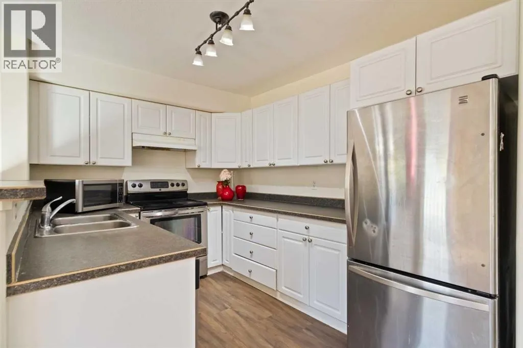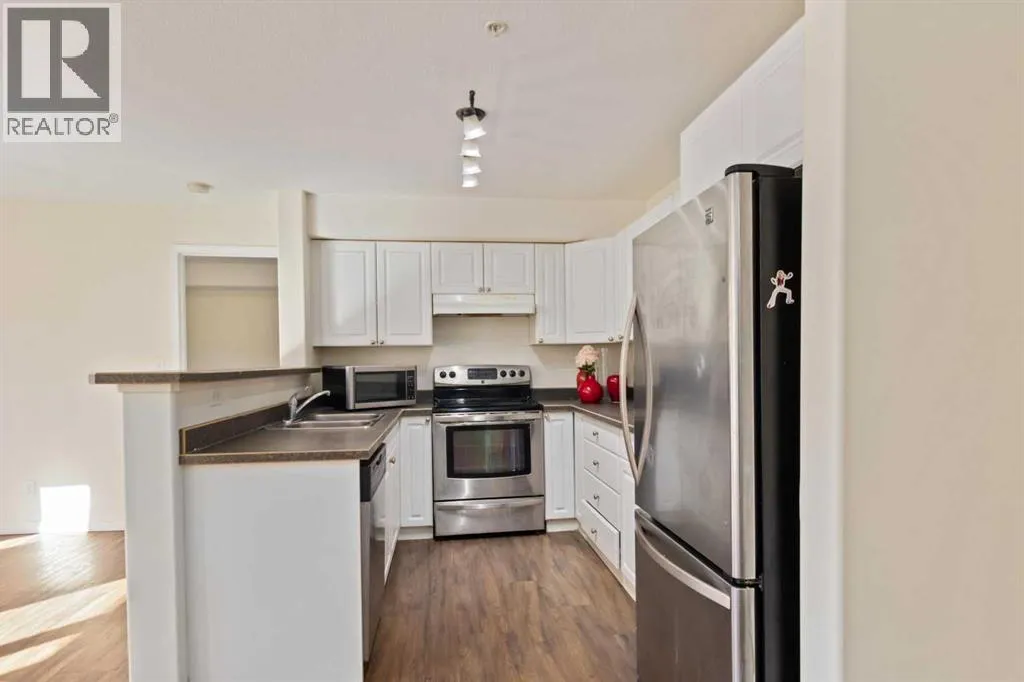 Spacious First-Floor Comfort in a Prime Location!Welcome to this bright and functional 3-bedroom, 2-bathroom apartment, perfectly designed for first-time buyers or smart investors. Located on the main floor, this home offers easy access with no stairs and a convenient layout for everyday living.The open-concept design features Luxury Vinly Plank flooring, large windows that fill the space with natural light, and a generous living and dining area that flows into a practical kitchen with ample cabinet storage.Step onto your private patio, ideal for morning coffee or outdoor relaxation, with additional secure storage for your bike or seasonal items.The primary bedroom includes a large closet and private ensuite with a full tub. Two additional bedrooms provide flexibility for guests, family, or a home office. A second full bathroom and in-suite laundry add to the comfort.Extras: unit includes dedicated parking right outside for easy access.Located steps from Eagle Ridge The Commons, enjoy walking distance to the movie theatre, restaurants, pharmacy, parks, trails, schools, and public transit.Move-in ready and full of potential, this main-floor gem offers the lifestyle and convenience youâre looking for. (id:27476)
