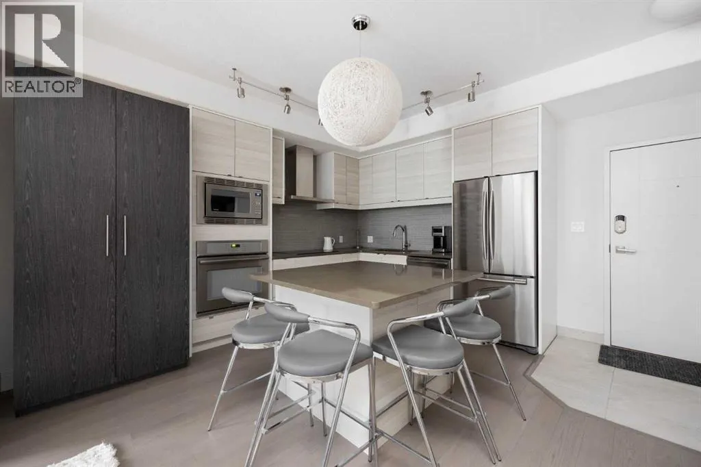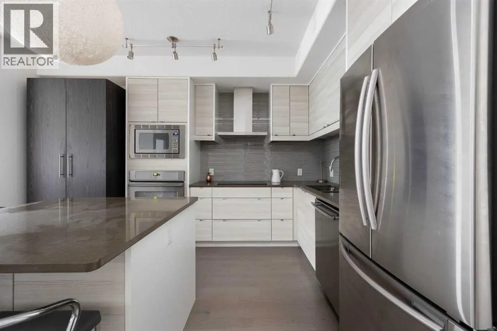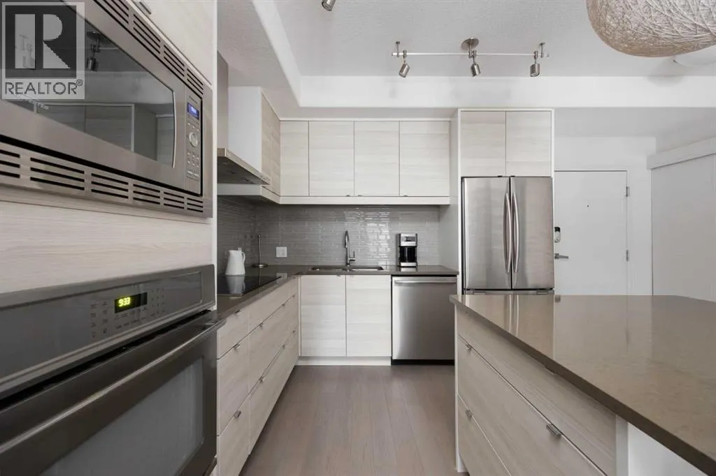 This condo doesnât whisper luxury. It purrs it.Step inside and feel it right away. The soft light. The clean lines. The calm that comes from knowing everything is fresh, modern and easy to love. With 847 square feet of smart space, this two bedroom, two bathroom home gives you style without the fuss.The sleek kitchen is the heart of it all. Smooth quartz counters, a large island with seating, and stainless appliances make cooking (or take-out plating) a breeze. Itâs open to the cozy living room so you can chat, laugh and relax without missing a thing.Slide open the door to your balcony and let the view of the river steal the show. Itâs peaceful up here. You can sip your morning coffee or watch the sunset and feel far from the noise, even though youâre right in the heart of downtown.The primary bedroom feels like a calm retreat. European style closets keep everything neat and organized, and the ensuite is pure comfort with heated floors and a steam shower. The second bedroom and full three-piece bath give space for guests, a home office or both.In-suite laundry keeps life simple, and the storage room means you actually have a spot for everything. Thereâs secure underground parking so winter mornings donât start with scraping windshields. The building is quiet and well kept, close to shopping, coffee spots and all the best parts of downtown living.Living here solves a few problems you didnât even know you had. No more yard work. No more driving across town for what you need. No more trading comfort for convenience. This home gives you both. The $630.45 condo fees includes cable, internet and heat.Close to schools, parks, shops and transit, itâs an easy fit for professionals who want to be near the action but still come home to peace and a great view.Check out the detailed floor plans where you can see every sink and shower in the home, 360 tour and video. Are you ready to say yes to this address? (id:27476)