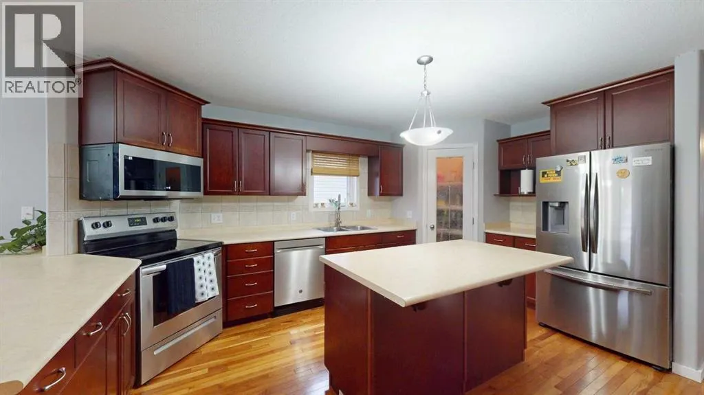 Letâs start with the obvious - this one has space! Five bedrooms (3 up, 2 down), and three full baths in this raised-bungalow layout that keeps everything bright. Even the basement feels like part of the house, not an afterthought. On the main level, youâve got tigerwood hardwood throughout the kitchen and back living room, fresh paint, and new vinyl plank in the entry and primary suite. The flow just works - a roomy entrance for all the chaos of daily life, a family room off the kitchen with walk out access to the back yard, space for an actual dining table, and enough room for that massive sectional youâve been eyeing up. Downstairs, itâs whatever you need it to be - wet bar area, two huge bedrooms, and two separate family spaces. Turn one into a gym, send the kids down to their own zone, or make it the best movie room in the neighbourhood. Don't forget the 3rd bathroom too! Outside, youâve got a triple driveway with room to park an RV, double attached garage, and a fully fenced yard that's ready for pets (with its own fenced in dog run), BBQs, and late-night hang outs. Listed below appraised value, this home gives you more space, more freedom, and a layout that actually lives the way you do. This oneâs a rare mix of smart buy and great energy. Make it yours before someone else does. (id:27476)