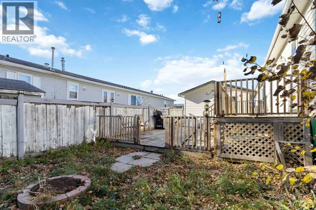 Welcome to 200 Harpe way - a move in ready home backing on greenspace and walking trails with a single detached garage and ample parking!. This home has 3 bedrooms, including a spacious primary suite with a full ensuite at the back of the home. With vaulted ceilings, the open floor plan of the living room and kitchen make the space feel bright and inviting and the kitchen has skylights, lots of cupboard space and room for a small kitchen island as well as a dining room table. At the front of the home you will find a large 4 piece bathroom and the two additional bedrooms, with one featuring a large walk in closet. Garden doors off the kitchen lead you outside to your huge two tiered deck, great for the entertaining and tons of space for the outdoor kitchen you have been dreaming of! The back yard is low maintenance and just big enough for your furry friends, or for sitting around enjoying a fire. There is a shed at the back of the home for extra storage and a gate in the back fence leads you to beautiful wooded walking trails. Finally, the detached garage can provide extra parking or toy storage, or be transformed into your new hangout spot! Located within walking distance of parks, playgrounds & Syncrude Athletic Park and close to all the amenities Timberlea provides, this would make for a great starter home! (id:27476)