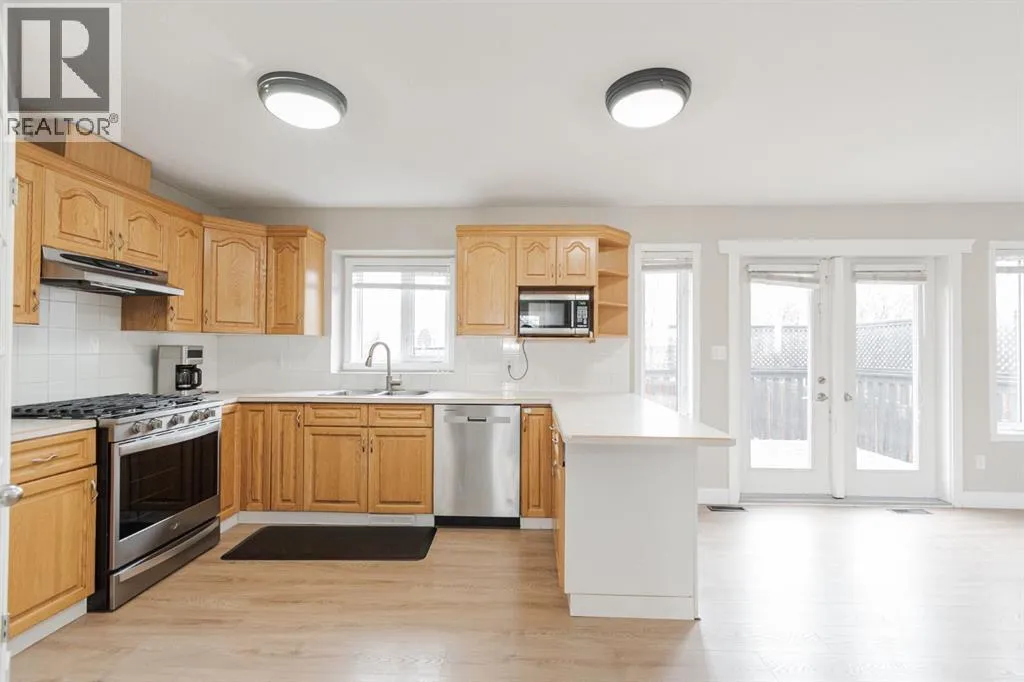 Welcome to 168 Burton Place, a beautiful family home tucked away in one of Timberleaâs most sought-after neighbourhoods. Known for its welcoming atmosphere, excellent schools, nearby parks, and endless walking, being and skiing opportunities in the Birchwood Trails, Timberlea Bâs is truly one of the best places to raise a family or simply enjoy the peaceful setting it offers. This modified bi-level has been cared for by the same owners for nearly a decade and offers a wonderful blend of comfort, function, and community charm.The homeâs curb appeal shines with updated shingles, an exposed aggregate driveway for two that leads to an attached and heated double garage. Step inside to a bright and inviting entry featuring updated herringbone tile floors, leading up to the main living area where new luxury vinyl plank flooring and updated black lighting create a fresh, modern feel. The kitchen offers plenty of cabinet space, a double-door pantry, and stainless steel appliances including a gas stove, fridge, and dishwasher, all replaced within the past two years. The main level is complete with two spacious bedrooms and a full bathroom, while the primary bedroom is privately set above the garage, a perfect retreat for parents or anyone looking for added privacy.Downstairs, the cozy family room features a gas fireplace and large windows, creating a bright and welcoming space to gather. On the other side of the basement, youâll find a generous play area, along with two additional bedrooms, each with its own coloured wainscotting, and a two-piece bathroom with room to add a future shower if desired. The laundry area and additional storage are also located on this level.Outside, enjoy a private backyard with no neighbours behind and mature landscaping that creates the perfect retreat. Youâll love relaxing on the two-tiered deck complete with a gas line for your BBQ. The yard offers plenty of space for kids and pets to play, with a sandbox, trampoline, and play structure alr eady in place. The heated garage adds even more versatility, currently set up as a workout area but easily adaptable for parking, projects, or extra storage. The home is also equipped with a new hot water tank (2023).Charming, functional, and located in one of Fort McMurrayâs most beloved family neighbourhoods, this home is ready for its next chapter. Schedule a showing and see why Timberlea Bâs continues to be a favourite place to call home. (id:27476)