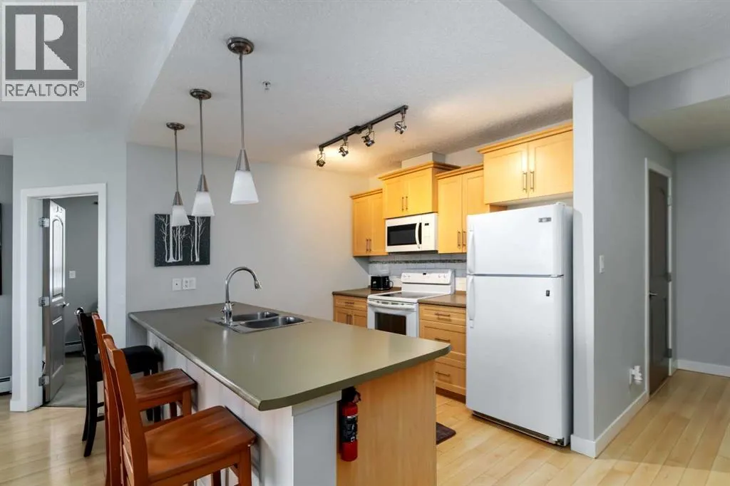 Welcome to 204 Sparrow Hawk Drive #2104, a rare ground-floor corner unit with two gated patios in the highly sought-after Vistas at Eagle Ridge, where modern elegance meets everyday practicality. Bathed in southwest sunlight and nestled just steps from the serene Birchwood Trails, this luxury residence offers a sophisticated lifestyle in one of Fort McMurrayâs most desirable communities.Step inside to discover an open concept floor plan featuring a practical entryway with a large coat closet and the convenience of a laundry/storage room. This space flows into a stylish kitchen with a sleek tile backsplash and a large breakfast barâperfect for entertaining. This home features two generously sized bedrooms, designed for both comfort and privacy. The spacious primary suite includes a large walk-in closet, offering ample storage and a touch of luxury, along with access to your private oversized covered veranda showcasing picturesque views of the Birchwood Trails. The living room is bathed in natural light, with large windows framing fantastic views. Enjoy your morning coffee or evening wind-down on the private gated patio with a natural gas hookup. Added conveniences include in-unit laundry, a titled underground tandem parking stall for two vehicles, and a separate titled storage unitâa rare and valuable find. Residents of The Vistas enjoy access to a fitness centre, vehicle wash bay, and a charming outdoor playground, all within a quiet complex backing onto green space. With close proximity to schools, shopping, restaurants, and a host of other amenities, this home offers the ideal blend of comfort, elegance, and functionality. Experience the perfect balance of luxury and lifestyle. Check out the photos, floor plans, and 3D tour, and call today to book your personal viewing. (id:27476)