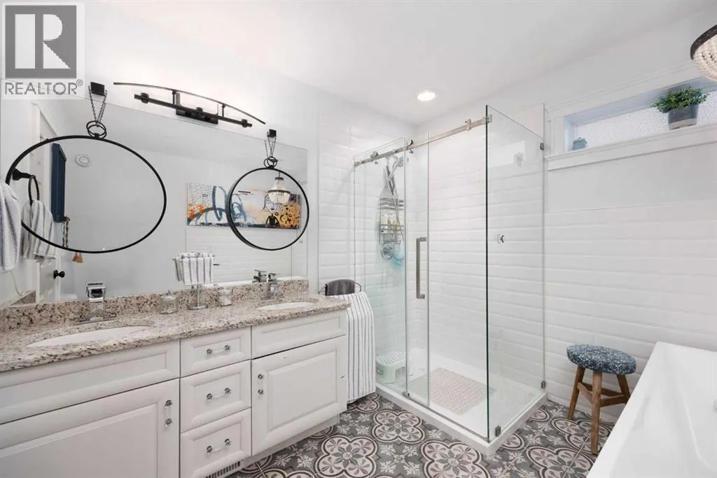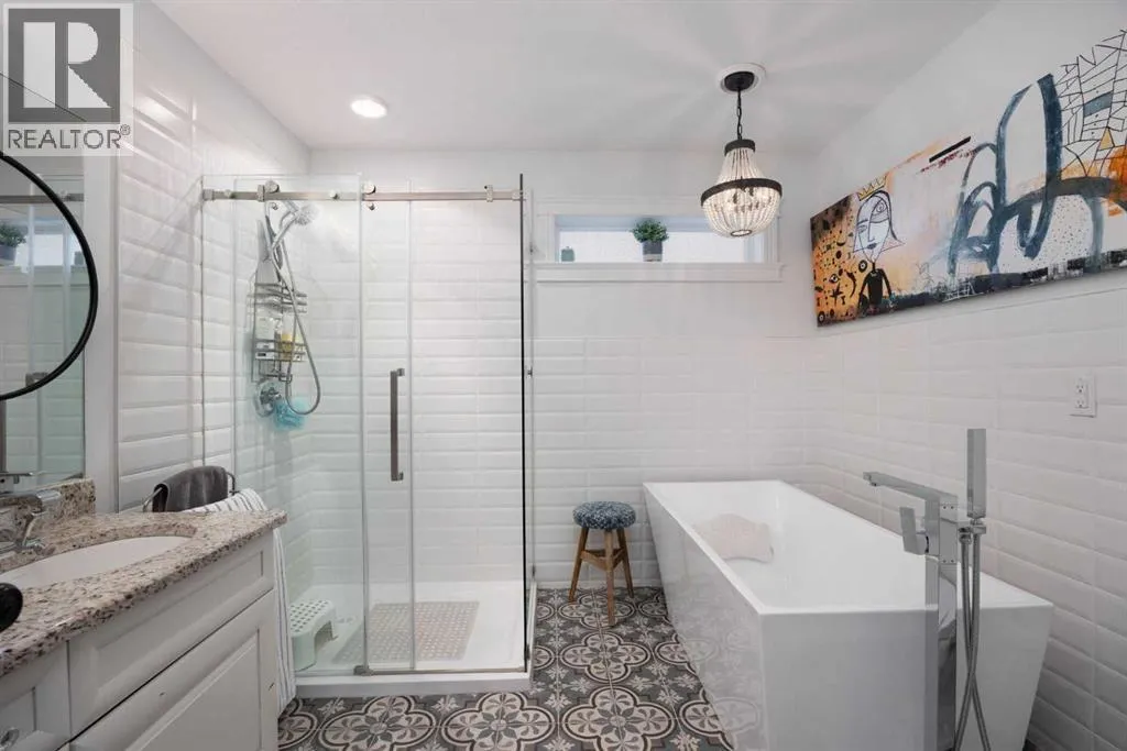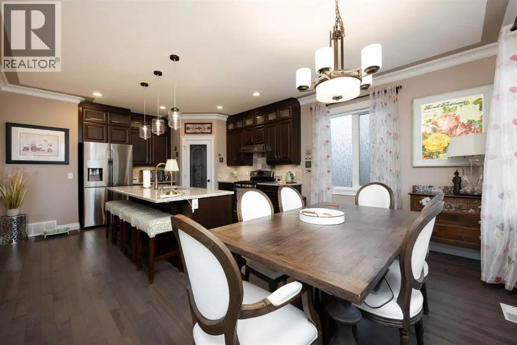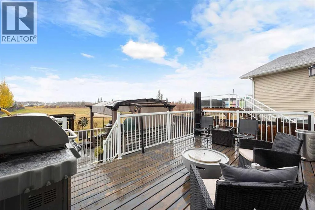 Welcome to 249 Walnut Crescent! This spacious executive home backing onto a GREEN BELT features CENTRAL AIR, double attached IN-FLOOR HEATED GARAGE with epoxy floor, a 3+ car driveway with RV PARKING, a water softening system and a fully contained basement suite with SEPARATE ENTRY. As you walk into the home, you will be welcomed into a beautiful open concept living space with hardwood flooring and large windows that let in plenty of natural light. The living room has a fireplace and a gorgeous stone wall and the kitchen features tons of dark cabinetry, granite countertops, gas stove, 8 ft island with breakfast bar, pendant lighting, garburator and corner pantry. Also on the main floor is a bedroom that could be used as an office and a 3-piece bathroom. Upstairs you will find a sizeable primary with carpet flooring, walk-in-closet and a 5-piece remodeled ensuite with soaker tub, walk in glass shower and double vanity. On the second floor, there are two additional good size bedrooms each with walk-in-closet, a large bonus family room, a 4-piece bathroom and the laundry. In the basement is the 2 bedrooms illegal suite with 9 foot ceilings, in-floor heat, its own laundry and separate entry. The charming backyard is fully fenced with gate for direct access to the green belt, its has mature trees, 2 decks with view of the green space, a shed for extra storage, a fireplace and pergola perfect for cozy nights entertainment. Donât miss out on this GEM and book your private showing today! (id:27476)