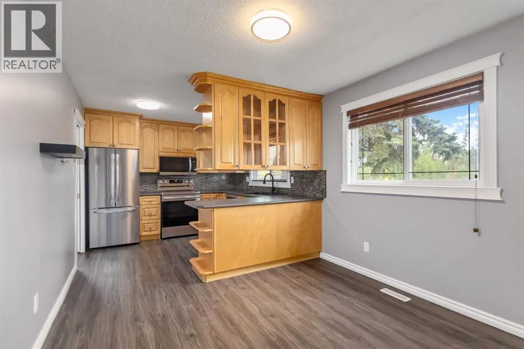 Welcome to 109 Rosslyn Street: A charming four bedroom, two bathroom bungalow perfectly situated in the heart of Thickwood. This home sits on a quiet, family friendly street directly across from a BEAUTIFUL GREENBELT, offering PEACEFUL VIEWS and direct access to trails right outside your front door.The main level features a bright and spacious living room with large windows that frame the green space and fill the home with natural light. Just off the living room is a door leading to a 9'x16' deck, which not only offers peaceful views of the greenbelt but also provides direct access to the backyard, making it easy to let pets out or send kids back to play without having to go through the house or a great spot to enjoy morning coffee.The eat in kitchen is both functional and inviting, and it has just been updated with BRAND NEW APPLIANCES IN 2025 that have never been used. A set of convenient pocket doors separates the living and dining area, as well as the kitchen, from the side entrance, allowing you to easily open up the space for gatherings or close it off for privacy when needed. Three generously sized bedrooms and a full bathroom complete the main floor, making it an ideal layout for family living.Downstairs, the finished basement expands your living space with a large family room, a wet bar, and a versatile multipurpose room that could be used for storage, a gym, or an office. A fourth bedroom, another full bathroom, and a separate side entrance offer convenience for extended family or guests.Over the years, this home has been extensively updated, including newer windows, doors, siding with additional insulation, soffit, fascia, and roof in 2010, a new furnace and central A/C in 2012, and a newer hot water tank in 2013. These improvements, combined with the brand new kitchen appliances, ensure comfort and peace of mind for years to come.Outside, the property continues to impress with a fully fenced yard surrounded by mature trees, providing privacy an d a welcoming outdoor space. The detached heated double garage with a convenient 220-volt outlet adds both functionality and storage, while the exceptionally long driveway offers ample room for multiple vehicles, RV parking, trailers, or recreational toys; truly a rare find.Located in a desirable, mature neighbourhood, this home offers the best of both worlds: a quiet setting with green space at your doorstep, while still being just minutes from schools, parks, walking trails, bus stops, and all the amenities of Thickwood.109 Rosslyn Street is the perfect blend of charm, updates, and functionality; a home designed for families to enjoy for years to come. Call now to book your personal tour. (id:27476)