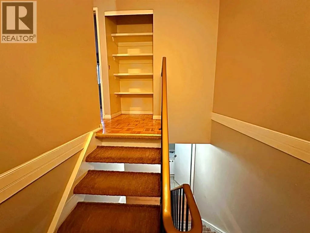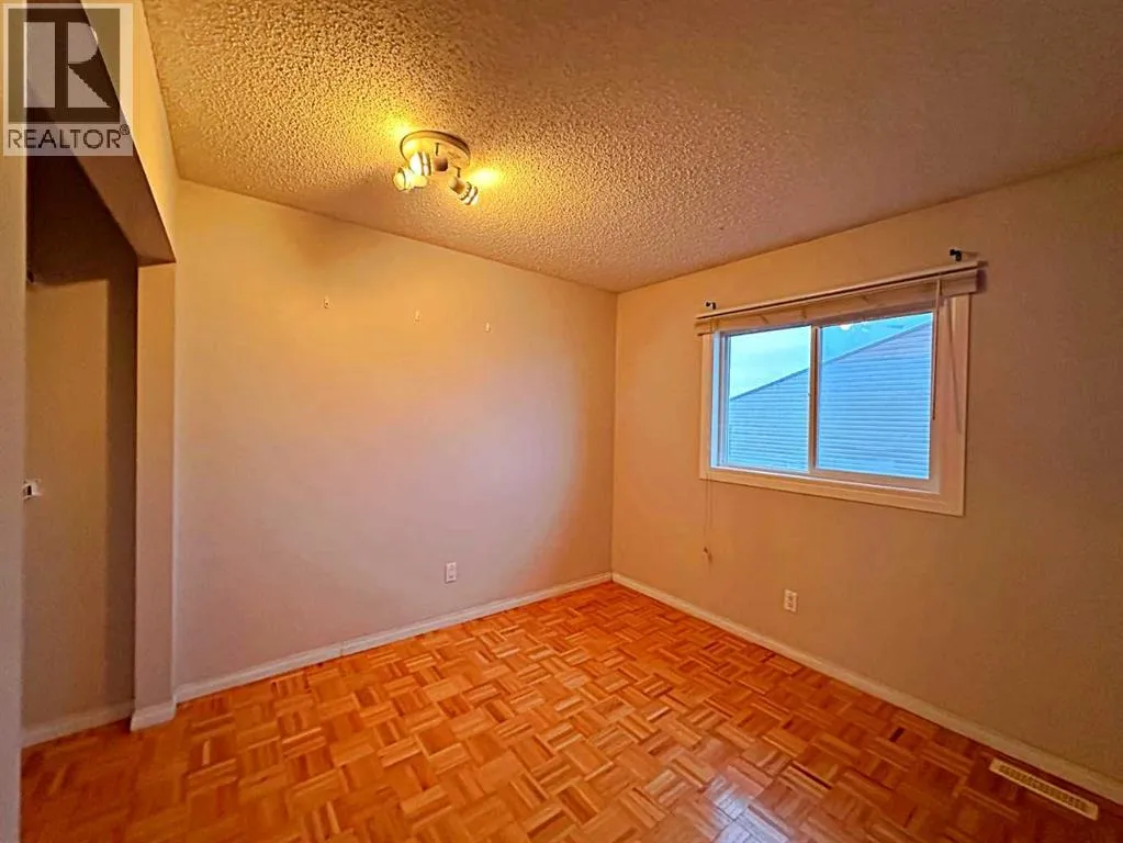 Welcome to the heart of Thickwood! This fully developed townhouse is ideally located just steps from schools, shopping, health centres, bus routes, and beautiful trail systems. With three bedrooms plus a flexible lower-level room, this home offers plenty of space for a growing familyâ and a single attached garage for added convenience. Stay cool and comfortable all summer with central air conditioning! The inviting living room features cathedral ceilings, laminate flooring, custom built-in bookshelves, charming wainscoting, and access to your private fenced patio â perfect for relaxing or entertaining. The bright kitchen is a standout, offering updated cabinets, stainless steel appliances, modern fixtures, an eat-in dining area, and a massive walk-in pantry that provides exceptional storage. Upstairs, youâll find three bedrooms, parquet flooring, and a 4-piece main bath. The spacious primary bedroom includes a massive walk-in closet, creating the perfect retreat. Enjoy the private fenced yard area, perfect for entertaining. With immediate possession available, this move-in-ready home combines comfort, convenience, and style â all in one of Fort McMurrayâs most desirable neighbourhoods. (id:27476)