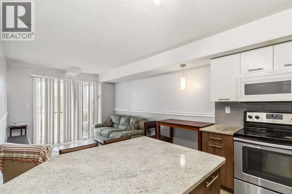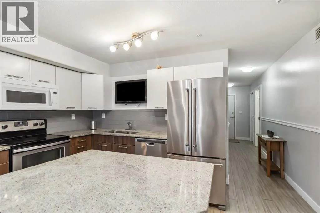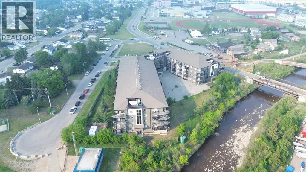 IMMEDIATE OCCUPANCY ON THIS EXECUTIVE YET AFFORDABLE HIGH END ONE BEDROOM PLUS DEN, WITH 2 FULL BATHROOMS AND TITLED UNDERGROUND HEATED PARKING, QUARTZ COUNTER TOPS, CENTRAL A/C, LARGE PATIO TO AN OPEN COURTYARD COMPLETE WITH ALL THE HIGH END FINISHINGS YOU WANT AND PETS ALLOWED. This is an excellent opportunity for those wanting to be close to Keyano College and want quick access to the River Valley, trails, Clearwater River, and downtown core. Situated on the Southwest side of the city, which is the most desirable area of the Downcore, in a beautifully maintained, managed and secure building. This unit is particularly special as a ground floor unit that faces the large courtyard. This is the perfect unit for those with pets to have easy access to the outdoors. Your unit offers a gated patio area that is open to the large courtyard to entertain and watch your children play and have a picnic. Inside of this move-in-ready condo, you have a large entryway that leads to a great living area that includes a spacious kitchen with a large island, two-tone cabinets, white uppers and stylish wood tone lowers. Plus you have quartz countertops, tiles backsplash, eat- up breakfast bar, and stainless steel appliances. The living room offers a great space and those garden doors leading to your patio. This perfect condo continues with a large bedroom with spacious closet and full ensuite large windows giving you tons of natural light. In addition, you have a large den that could be used as a second bedroom or front office. Just off the den is the second full bathroom. This modern and functional condo is complete with in-suite laundry and storage room. To complete this excellent buy you have a heated underground parking stall, can come with the furnishings in the unit and you have on-site gym for property owners. This ground level unit is perfect for those with pets to have quick easy access to the outdoors. This well managed building offers reasonable condo fees that include he at ,water, sewer, garbage, insurance, and common area maintenance. Call today for your personal tour of this move-in-ready and turnkey home. (id:27476)