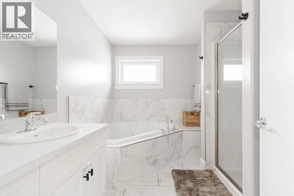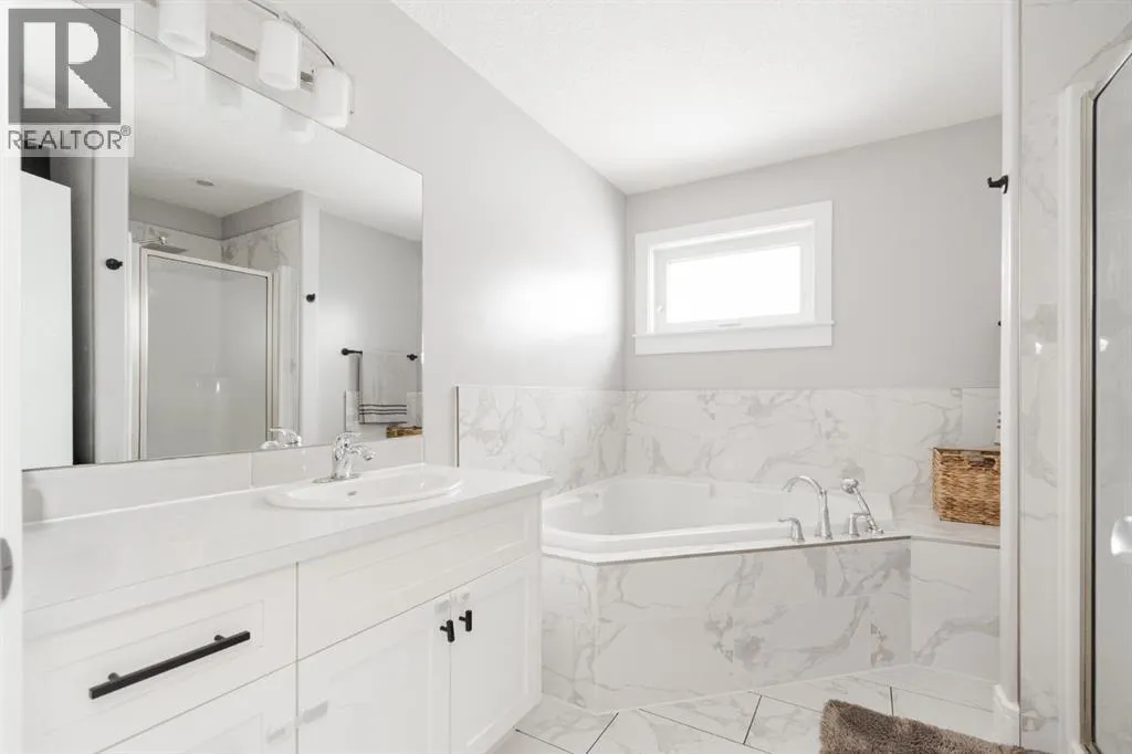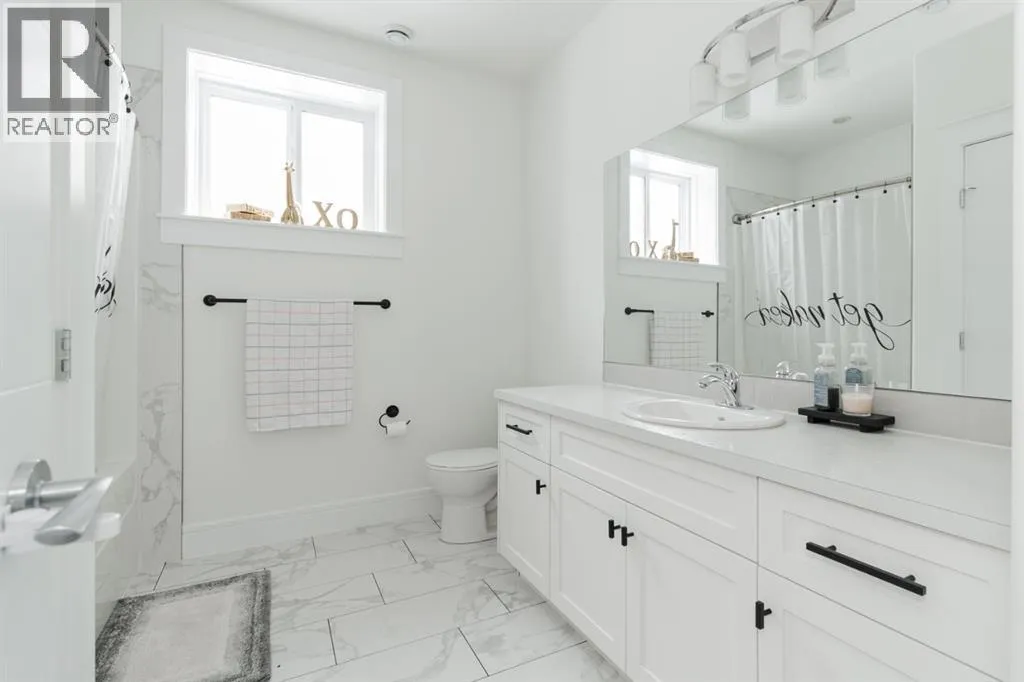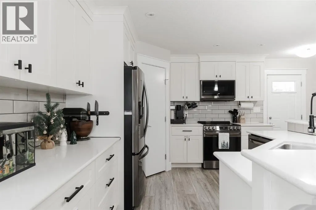 Welcome to 153 Beaconwood Place: a beautifully maintained bi-level home that blends modern style with incredible functionality. Built in 2017 and kept in pristine condition, this property offers a bright open-concept layout, a stunning white kitchen, a fully developed basement with a wet bar, and incredible outdoor potential on its large 9,409 sq/ft lot including vehicle access into the yard and space to build a second garage if desired in addition to the heated attached double garage.Inside, the main level features vinyl plank flooring, fresh neutral paint on the walls and a warm, inviting open floor plan with plenty of natural light. The kitchen stands out with its quartz counters, large island, pantry, black faucet, and upgraded black stainless steel appliances all purchased in 2023. The living and dining areas flow seamlessly together, creating the perfect space for everyday living and entertaining.The main floor is home to two bedrooms, including a beautiful primary suite that comfortably fits a king-size bed and features a black accent wall, refreshed paint and baseboards, and a four-piece ensuite with a jetted soaker tub and separate shower. The second bedroom works well for guests, children, or a home office. Main-floor laundry is conveniently located off the hallway and offers new washer and dryer (2023), added shelving, and a clean, modern feel.The lower level is where this home continues to shines. With high ceilings, an open rec room, and a wet bar complete with a mini fridge, this area is perfect for entertaining, relaxing or creating the ultimate movie room or games space. The basement also includes two additional bedrooms, a full bathroom, and a second laundry hookup for added convenience.Outside, the fully fenced yard offers exceptional possibility with a wide gate that allows you to drive directly into the yard, perfect for extra parking, recreational toys, storage or future garage development. Enjoy the back deck during the warmer months over l ooking the expansive yard and the flexibility to personalize the space as you wish. Additional highlights include central AC installed in 2023 and a heated double attached garage, with the ride-on lawn mower included for easy lawn care.Thoughtfully cared for, turnkey with beautiful finishes, 153 Beaconwood Place is a rare find in the desirable neighbourhood of Beacon Hill, surrounded by trails and outdoor adventure. Schedule your showing today and experience the charm, comfort, and impressive lot potential this home offers. (id:27476)