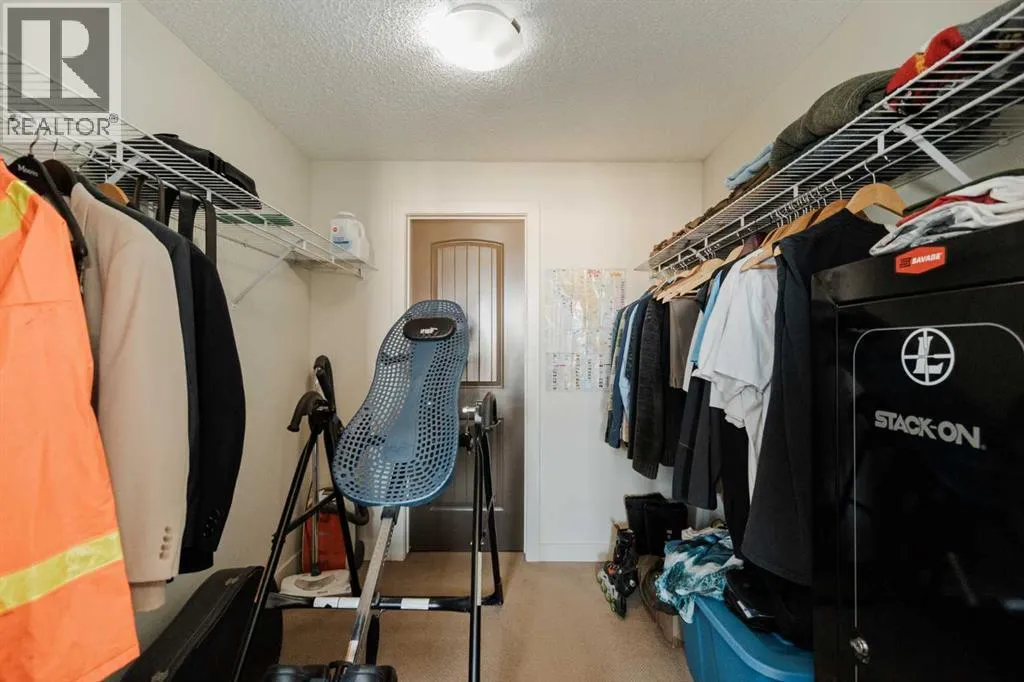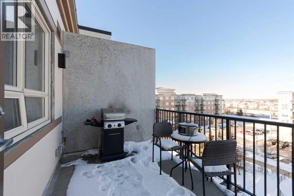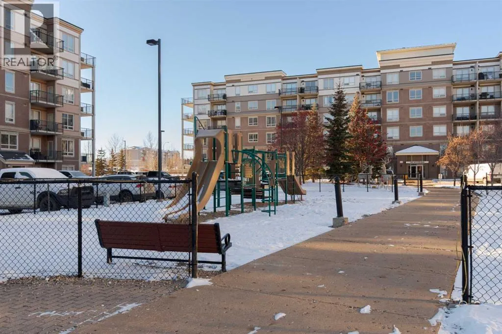Welcome to The Peaksâwhere comfort meets convenience.This top-floor one-bedroom residence showcases serene views of the interior courtyard and playground, offering a private and peaceful backdrop. The thoughtfully designed open-concept layout features an eat-up breakfast bar with room for a full dinette, seamlessly flowing into a spacious living room with direct access to the balcony.The primary bedroom includes a walk-through closet leading to a well-appointed full bathroom, while in-suite laundry adds everyday ease. The balcony is equipped with both a natural gas BBQ hookup and an AC hookup, enhancing your outdoor and seasonal comfort.This home comes complete with one underground titled parking stall and a tandem storage unit (#148)âideal for keeping life organized.Condo fees provide exceptional value, covering:Heat ⢠Water ⢠Garbage removal ⢠Underground car wash station ⢠Professional management ⢠Exterior maintenance ⢠Building insurance.Perfectly positioned near grocery stores, dining, fitness centres, and essential amenities, this residence offers an elevated lifestyle in a highly desirable location. (id:27476)