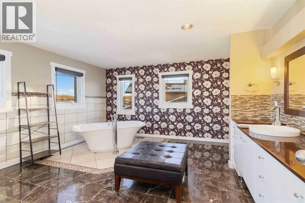 Welcome to 224 Torrie Crescent, a truly one-of-a-kind architectural masterpiece nestled in the heart of Fort McMurray. Boasting over 4,000 sq ft of custom-designed living space, this extraordinary residence is saturated with character and charm, offering the perfect sanctuary for large families or those who love to host lavish gatherings. Situated on an expansive, private 13,000+ sq ft lot, this home provides a serene escape, backing directly onto the lush greenbelt and the scenic Birchwood Trail system. The exterior is an entertainer's dream, featuring a fully fenced and professionally landscaped yard, a bespoke stone-designed firepit area, covered BBQ space, and valuable RV parking, hot tub hook up and storage on side of home with shed. Step outside onto the unique upper balcony to take in greenbelt viewsâa potential spot for creative putting green! Inside, vaulted ceilings create an immediate sense of grandeur. The impressive main level hosts a spectacular great room centered around a cozy three-way fireplace, a formal dining room, and a gorgeous white chefâs kitchen equipped with granite countertops, a large oval island, and premium built-in appliances (fridge and cooktop updated in 2021). The main floor also offers incredible versatility with a flexible den/office, two oversized bedrooms, an updated four-piece main bathroom, and a convenient two-piece powder room, all refreshed with new flooring and contemporary paint in 2025, and the main level is also complete with main floor laundry room that also has extra storage area. The upper level serves as an exclusive oasis. A huge bonus room provides great space for a large family room or even a dedicated gym area, accompanied by an upper den that could easily be converted into a fourth bedroom, as it has a closet. This space also offers an upper balcony. The master suite is simply incredibleâthe 5-piece ensuite is a dream, just like the ones you have seen in the movies featuring an oversized freestanding soaker tub , a spacious walk-in shower, double vanities, and two walk-in closets that offers unparalleled storage and luxury with built in shelving. This home has been maintained with significant updates, including replaced shingles, updated furnaces, a new hot water tank (2021), new sump pump (2023) and central A/C. Plus, you have an attached double-car garage. In addition, you are perfectly located in the subdivision of Dickensfield within walking distance of two elementary schools. This distinctive property must be seen in person to truly appreciate the unparalleled lifestyle it offers. This home is a true gem filled with charm and character. Schedule your private tour now. (id:27476)