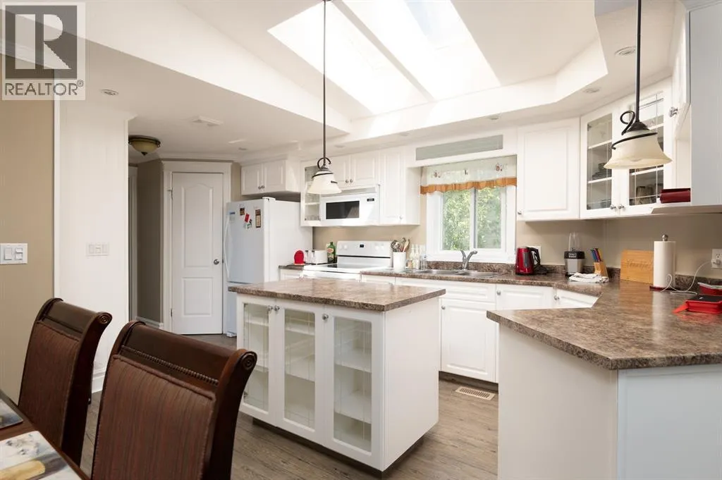 What a find. This beautifully updated corner lot home has three bedrooms, two full bathrooms, an open concept, stunning outdoor living space and an abundance of parking, along with a 12'x16' heated shed with a garage door. The curb appeal will absolutely please, and with a large deck (redone in 2019), RV parking and two parking pads, you will have no shortage of places to put your toys, all while still enjoying the beautiful days outside. Some of the updates throughout this home include new flooring in the kitchen, living room, and bathrooms (2021), and new carpets in all the bedrooms (2021). In addition, the home has been freshly painted (2021), a new HWT installed, and the shingles and the siding were replaced in 2019. All you have to do is bring your suitcase, as all the hard work has been done for you! Located close to parks, schools, and walking trails, this home will be the perfect fit for you! (id:27476)