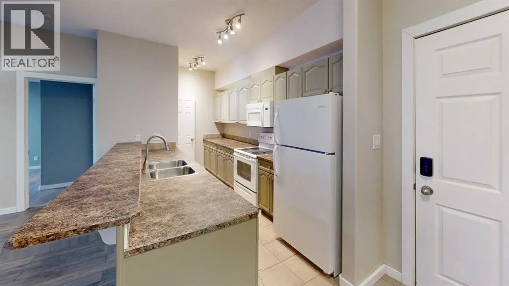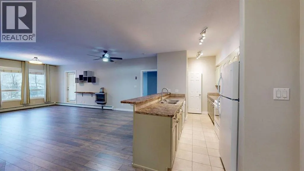 **Top-Floor Corner Unit Backing Onto Greenbelt â 2 Bedrooms + Den!** Discover this rare opportunity to own a spacious **1,100+ sq. ft. condo** featuring 2 bedrooms plus a versatile den. Perfectly positioned on the top floor corner, this home offers privacy, tranquility, and treed views from every window. **Bright & Functional Layout** â Bedrooms are thoughtfully separated by the main living area, with a den ideal for a home office. **Stylish Galley Kitchen** â Updated cabinetry, eat-up bar, and open sightlines to the dining and living room. **South-Facing Balcony** â Accessible from the primary suite, this sunlit retreat is surrounded by trees and perfect for relaxing. **Primary Bedroom** â Walk-through closet leads to a 4-piece ensuite. **Cozy Comforts** â Laminate flooring, fireplace, and in-suite laundry. Additional highlights include a **titled underground heated parking stall**, with extra surface stalls available for rent, and condo fees that conveniently cover heat and water. **Prime Location** â Nestled in one of the quietest buildings in town, backing onto a treed park, near a pond, walking trails, and just a short stroll to Starbucks and Save-On-Foods. **Available immediately â move in and enjoy the perfect blend of space, sunlight, and serenity!** (id:27476)