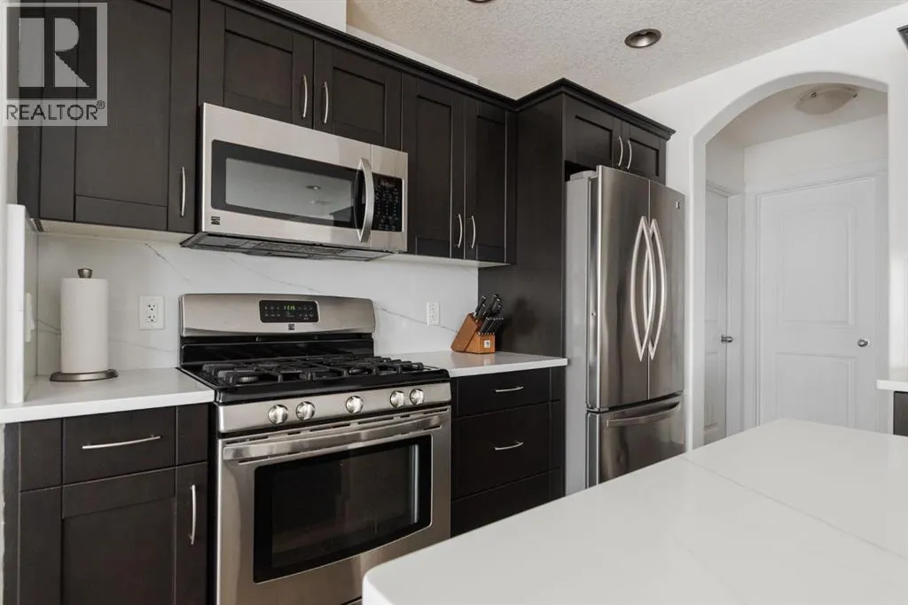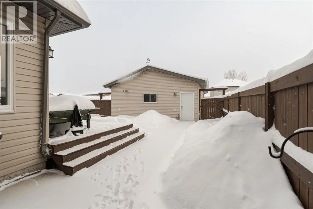 Welcome to 149 Magpie Street: a beautifully cared for two storey home offering charming curb appeal, thoughtful upgrades, and a fully legal basement suite. A larger layout with plenty space to grow into, this property has just been freshly painted with bright white walls throughout the top two levels, creating an airy and versatile backdrop to suit any style. The layout includes a main floor office, a spacious yard, a detached double garage, and additional side parking, offering both functionality and flexibility.With its centred front door and inviting front step, the home makes a warm first impression and feels welcoming from the moment you arrive. Inside, a tiled entry with tall ceilings creates a grand entrance that leads past the front den, currently used as a workout room. This versatile space could also serve as an office, sitting room, or playroom.The main living space features hardwood floors, a gas fireplace, and an open concept layout that creates a comfortable and connected atmosphere for everyday living and entertaining. The kitchen was upgraded in 2022 and showcases quartz countertops with a matching slab backsplash, a large island, a built in desk area, and stainless steel appliances including a gas stove. Tucked just behind the kitchen is a convenient laundry area with pantry storage and a nearby updated powder room featuring refreshed hardware, lighting, and shelving. A hidden storage space beneath the staircase adds practical functionality and keeps everyday essentials neatly tucked away.Upstairs, all bedrooms are finished with soft carpet. The primary suite is spacious enough to accommodate a king size bed and offers a large walk in closet and a five piece ensuite complete with dual sinks, new lighting and countertops that match the kitchen, and a tiled jetted tub. A second four piece bathroom on this level has also been updated with a new vanity, countertop, and lighting, providing a cohesive and refreshed look.A separate entrance leads to th e legal basement suite, which offers two bedrooms, a four piece bathroom, hardwood floors, in suite laundry, and a full set of appliances. This spacious suite can be sold furnished, including televisions, making it an excellent mortgage helper or extended family space.The fully fenced backyard is perfect for families and entertaining, featuring hostas, beautiful green grass, a concrete walkway, and a large deck that was stained to match the fence in 2023. A gas line for your barbecue makes outdoor gatherings easy. Parking is plentiful with an additional parking pad beside the garage and a detached double garage that is drywalled, insulated, heated with gas, and equipped with built in storage shelving.Additional highlights include central air conditioning, a high efficiency furnace, central vacuum, and an updated electrical panel completed in 2018.149 Magpie Crescent offers charm, functionality, and income potential in one complete package. Schedule your private showing today. (id:27476)
