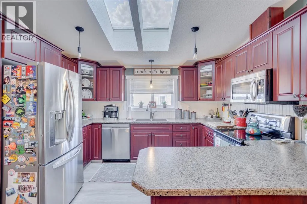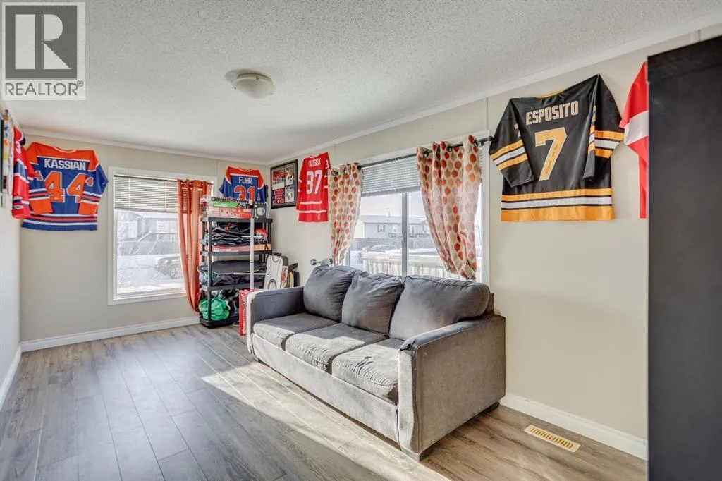 Double Wide ⢠No Condo Fees ⢠Air Conditioning ⢠Meticulously MaintainedWelcome to 157 Elm Street, a beautifully maintained 1,523 sq. ft. double-wide mobile home situated on a 4,445 sq. ft. fully fenced lot in the established and desirable neighbourhood of Timberlea.The bright, open-concept living room features vaulted ceilings, a stylish feature wall, new laminate flooring, and a cozy corner gas fireplaceâperfect for relaxing on cold winter evenings.The spacious kitchen is filled with natural light from an overhead skylight with heat trace and offers new laminate countertops, stainless steel appliances (replaced in 2017), linoleum flooring, and ample cabinet and counter space.This home offers three well-sized bedrooms, including a generous primary suite complete with a walk-in closet and a 4-piece ensuite featuring ceramic tile flooring and a relaxing soaker tub. Two additional bedrooms are located on the opposite side of the home and share direct access to a 4-piece bathroom and a second living area, ideal for a home office or family room.The separate laundry room adds convenience and functionality.Outside, enjoy a deck overlooking the yard, an 8' x 10' storage shed, and recent upgrades including a new belly bag, fresh sod laid in August, and a professionally filled and sealed driveway.No condo fees and move-in readyâthis home offers exceptional value.Call today to schedule your private viewing. (id:27476)