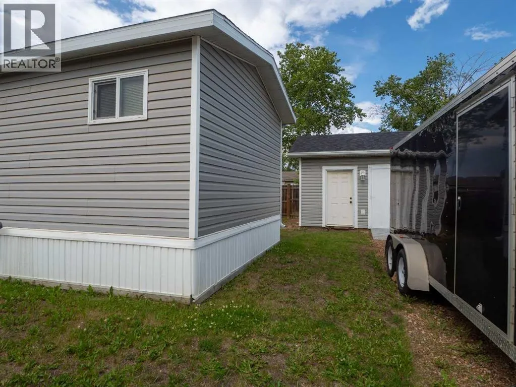 Welcome to 129 Grey Crescent in Gregoire Park, a well-maintained 1075 sq ft single wide with addition on a spacious 5933 sq ft corner lot. Originally built in 1978, this home has been given an effective age of 19 years with a remaining economic life of 31 years. Featuring 3 bedrooms, 2 full bathrooms and a bonus area, this layout is functional and uncommon. Enjoy recent updates including fresh paint, new flooring, a new hot water tank (2022), and a new washer and dryer just 2 years old and a brand new fridge (Aug 2025). The home also includes a 12x16 heated and insulated shed (2017), fenced yard on 3 sides (could be fully fenced with ease), and a large porch addition. Other highlights include 2015 shingles, 2014 siding, gutters, skirting with Styrofoam insulation and vents, 2014 cabinets, and appliances from 2016 to 2018, furnace is older but has been serviced annually. The home is tied down, has new water lines and an insulated belly bag as of 2021, and offers ample parking. This home allows space for all your toys and everything the outdoor enthusiast lifestyle demands, from trailers and sleds to boats and gear. Book a viewing to make this one your very own. (id:27476)