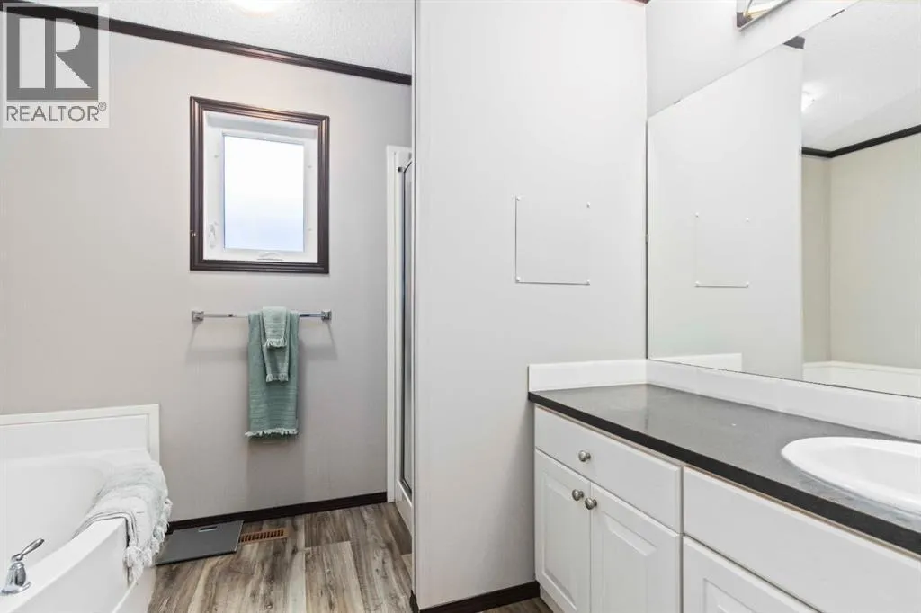 Welcome home to 161 Card Crescent: a beautifully maintained, turn-key home nestled in the heart of Timberlea. This 2018, 3-bedroom, 2-bathroom property boasts modern finishes, stylish upgrades, and an inviting layout that caters to both comfort and functionality.From the moment you arrive, the home makes a great first impression with its aesthetically appealing front exterior, paved double driveway, and double insulated front and back doors. Step inside to a bright and airy open-concept living space, enhanced by vaulted ceilings, oversized windows, and a sleek, modern kitchen featuring white cabinetry, stainless steel appliances, corner pantry, over-the-range microwave, and a spacious dining area that flows effortlessly into the cozy living room, ideal for entertaining or quiet nights in.The oversized primary suite is tucked away at the rear of the home, offering a tranquil retreat with a large walk-in closet and a luxurious 4-piece ensuite complete with a stand-up shower, relaxing oval soaker tub, and a generous vanity. Two additional bedrooms and a second full bathroom are located on the opposite end of the home, perfect for guests, family, or a home office setup.Other highlights include central A/C, a fully fenced private yard ideal for outdoor gatherings, and a 12x16 shed with a roll-up door for added storage.Location is key, just a 1 minute walk to Syncrude Athletic Park, where you'll find a waterpark, skateboard park, baseball diamonds, soccer fields, and a playground, making this the perfect spot for active families.If you're looking for a clean, stylish, and affordable home in one of Fort McMurrayâs most convenient areas, 161 Card Crescent checks all the boxes. Book your private tour today! (id:27476)