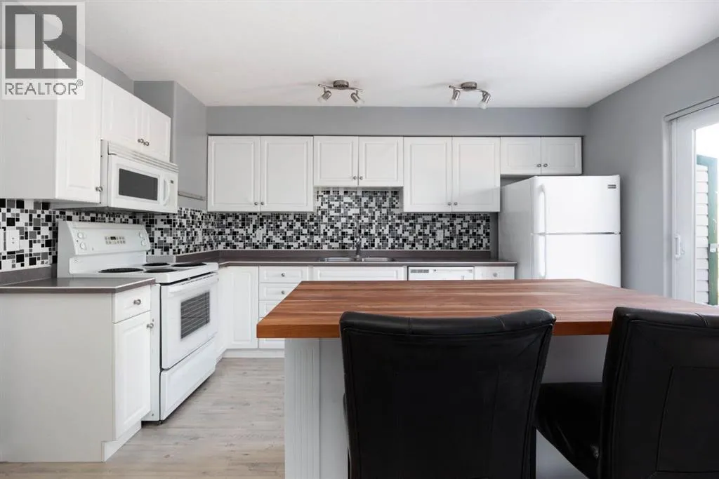 Welcome to this move in ready 2-bedroom home with an attached garage, ideally located in Prairie Creek and offering exceptional value. Whether youâre a first-time buyer or a savvy investor, this renovated (no carpet) home delivers comfort, functionality, and convenience in one inviting package. The spacious living room is filled with natural light from oversized windows, creating a warm and welcoming atmosphere with the corner gas fireplace. The kitchen offers plenty of modern white cabinetry, an eaten island and direct access to a balcony with natural gas bbq hookups. Upstairs, youâll find two generously sized bedrooms, each with large closets, along with a 4-piece bathroom; The master bedroom features a vaulted ceiling with large windows to draw in natural light. The yard is fully fenced and landscaped, perfect for entertaining or pets.Located close to public transit, walking trails, highway 63, the airport, and more, This move-in-ready gem checks all the boxes â value, updates, location, and affordable. Call to book your showing today! (id:27476)