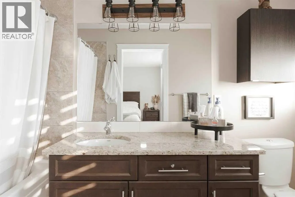Welcome to 108 Diamondstone Ridge, a beautifully maintained home backing onto walking trails in the highly desirable Stonecreek community. Pride of ownership is evident throughout this spacious 4 bedroom, 3.5 bathroom home featuring a bonus room and a fully developed basement with separate entrance.The welcoming front foyer offers ample space and a convenient coat closet, creating a comfortable first impression for guests. The main level boasts an open concept layout filled with natural light from the large rear windows. The kitchen is well appointed with new stainless steel appliances, dark cabinetry, granite countertops, a walk-in corner pantry, and a large center island with eat-up breakfast bar. Adjacent is a generous dining area with direct access to the two-tier back deck, ideal for indoor-outdoor entertaining.The living room is warm and inviting with a gas fireplace and hardwood flooring throughout the main level. A conveniently located 2-piece bathroom sits near the entrance to the heated double attached garage, completing the main floor.Upstairs, the thoughtfully designed second level features three bedrooms, a 4-piece main bathroom, and a large bonus room that separates the primary suite from the secondary bedrooms, perfect for added privacy. The spacious primary bedroom easily accommodates king size furniture and includes a walk-in closet and 4-piece ensuite. A full-size laundry room is also conveniently located on this level.The fully developed basement offers excellent flexibility with a separate entrance, fourth bedroom, modern 4-piece bathroom, and a massive recreation/family room, making it ideal for guests, extended family, or future rental potential.Outside, enjoy the large west-facing backyard, fully fenced and landscaped to take full advantage of Fort McMurrayâs stunning sunsets. The yard features a huge two-tier deck and stone surround fire pit, perfect for entertaining. Backing directly onto walking trails, the property offers immediate ac cess to neighborhood strolls and outdoor enjoyment.Ideally located within walking distance to grocery stores, restaurants, pubs, spas, shops, parks, and more, this home offers both comfort and convenience in one of Fort McMurrayâs most sought after neighborhoods. (id:27476)