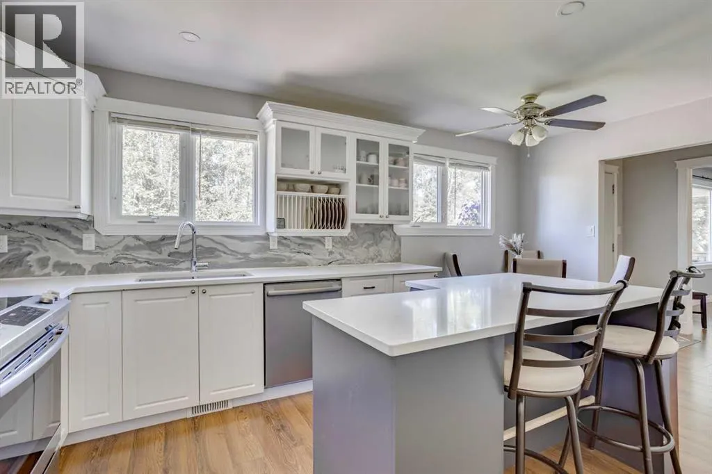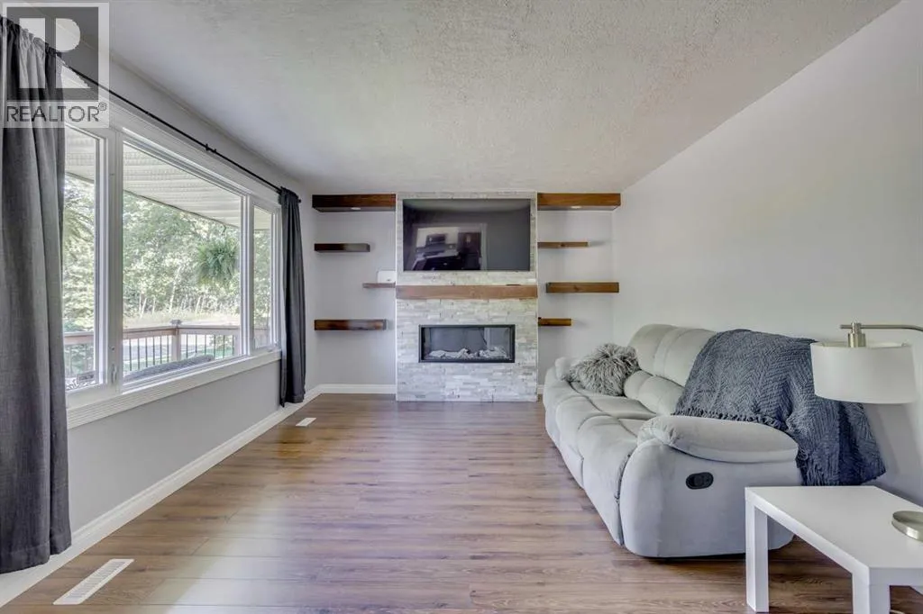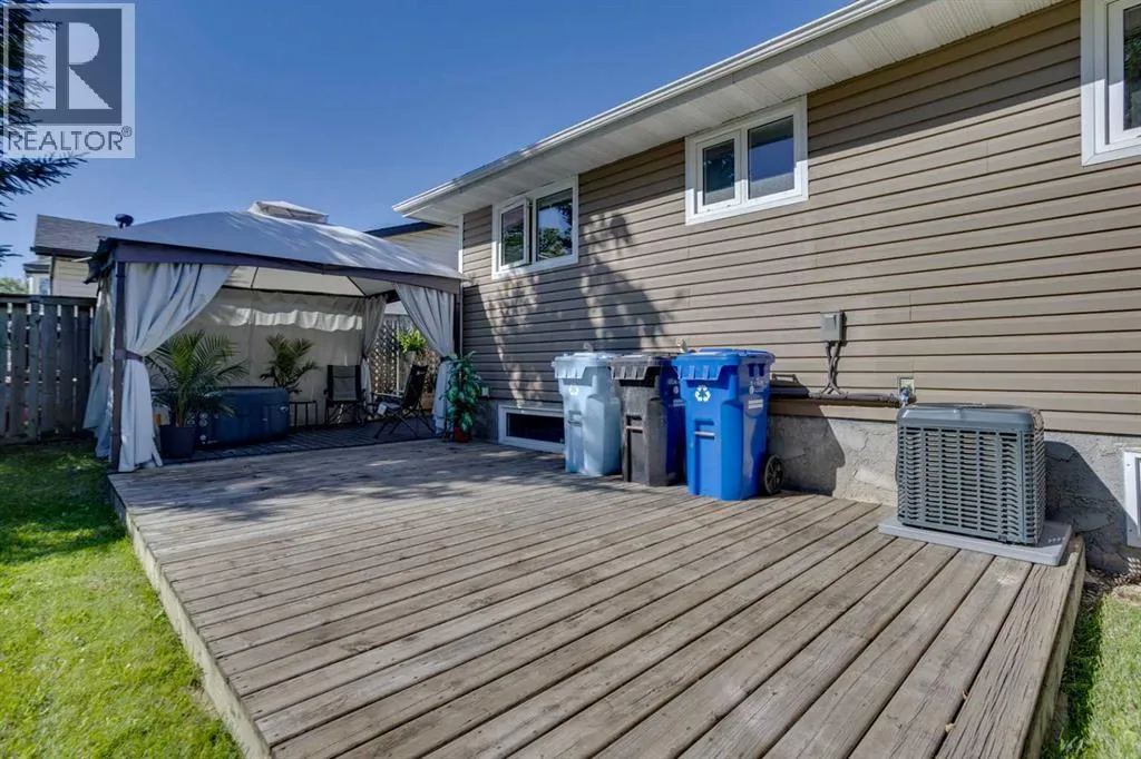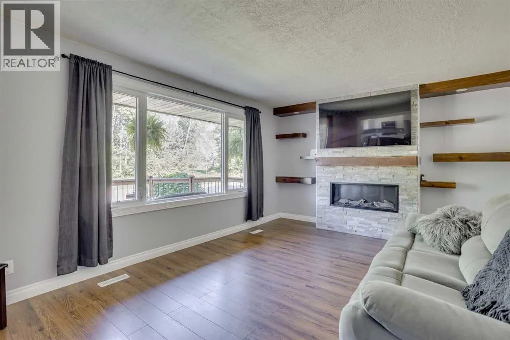ACROSS FROM TREE LINE! RENOVATIONS COMPLETE! Welcome to pride of ownership on sought-after Hilltop Crescentâwhere comfort meets style in a beautifully updated home across from scenic walking trails and a peaceful tree line. Step into a spacious foyer and through charming entry into a generous sun filled living room accented nicely by a stunning fireplace feature wall. The renovated kitchen is a standout with ample counter space which includes a large isalnd, white cabinetry, and sleek stainless steel appliances. Down the hall, youâll find three comfortable bedrooms and a fully updated 4-piece bathroom (2023) with modern finishes. The fully developed basement is a dream space, offering a large recreation area, a cozy den, a 4th bedroom, and a must-see bathroom featuring a gorgeous custom tile shower and dual sinksâperfect for guests or a growing family. The updated laundry room adds extra convenience. Enjoy your morning coffee on the front porch with tranquil views of the tree line and walking trails, or entertain in your fully fenced, landscaped backyard. Recent updates include: kitchen countertops (2025), stainless steel appliances (2019), interior paint (2021), new shingles (2024), A/C unit (2024), furnace & hot water on demand (2019), main bath countertops (2025), updated flooring throughout, washer & dryer (2019), newer front deck, fencing, and landscaping, as well as updated interior door hardware, and newer siding and windows from the previous owner. This home is located close to all amenities, including schools, grocery stores, and a dog parkâeverything you need just minutes away. Donât miss outâbook your private showing today! (id:27476)