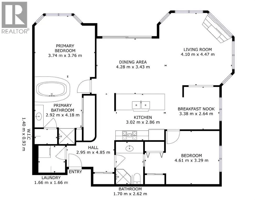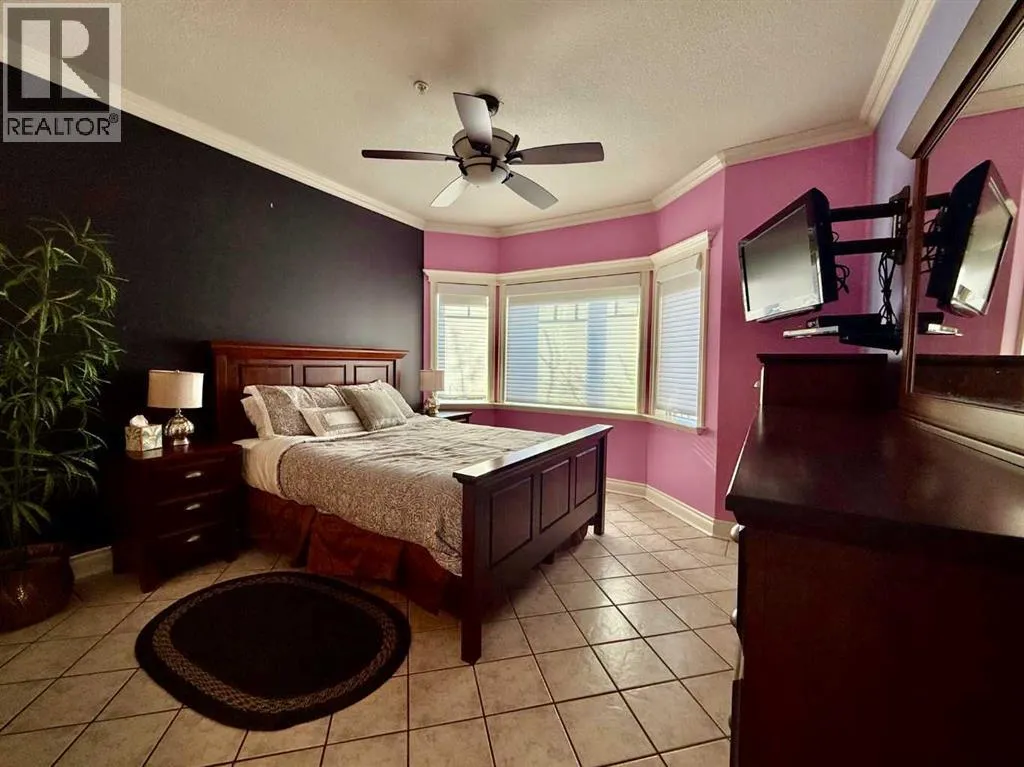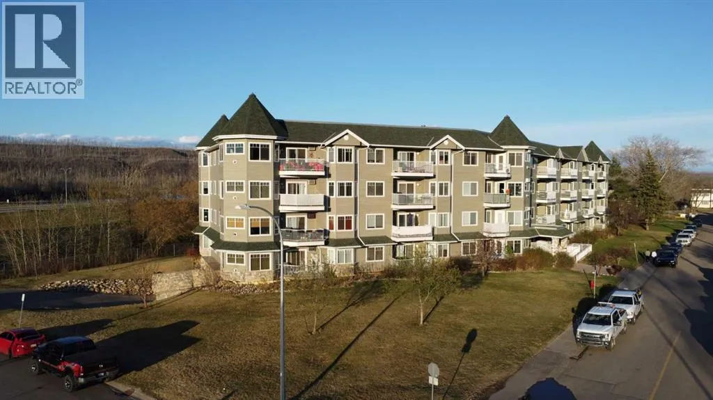 Affectionately nicknamed "The Castle" , the Royal Village is the grande dame of condominiums in Fort McMurray. Located steps from Snye Point park and Haxton pond, this garden unit penthouse has everything one could dream of in a home. Entering this corner unit you are greeted by a large front entrance and the vastness of just how large these condos are. There's ceramic tiles and new hardwood flooring. Open concept kitchen features a sit up peninsula, stainless steel appliances and real wood custom cabinetry. Large dining area with patio doors to deck, massive turret living room with a stone fireplace, 5 windows and a cutout to the den which could also be used as a breakfast nook. The primary suite will make you think you are in your own private honeymoon hotel suite. Room for a king size bed and dresser, your eyes can't help notice the 2 person jetted tub in the middle of the room. There's also a large closet with mirrored doors, spacious dressing area, stand up shower and a private room for the lavatory. The 2ed bedroom is large with 2 closets and access to the main 3 pce bath though a pocket door. There is also a laundry room with a stackable washer/dryer and central vac. Ten foot ceilings with crown moldings, in floor heat and double drywall for sound make these a truly unique condo living experience. This unit is owned by the original owners and is not uncommon to meet people who have lived in the Royal Village for 10-15 and 20 years. If you're young and want to impress, if you're downsizing from a large home and don't want to loose the grandeur or if you just like to be truly comfortable, this unit will not disappoint. Close to biking and walking trails, steps to Mac island and golf, shopping and nightlife. (id:27476)