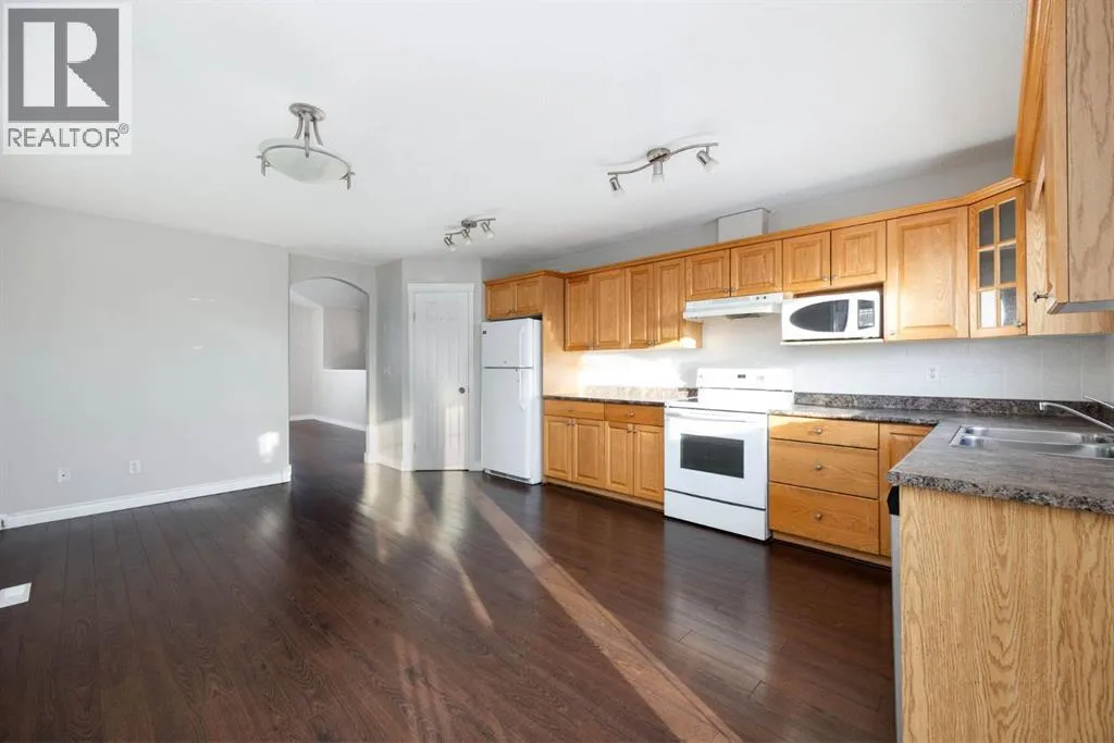 Welcome to 369 Mustang Road, tucked into a quiet pocket of Prairie Creek and backing directly onto a peaceful greenbelt. With no neighbours behind and trees as your backdrop, this home offers a rare sense of privacy while still enjoying quick access to the airport, Gregoire Industrial Park, Vista Ridge Adventure Park, and worksites along the Highway 881 corridor. This 1,448 sq ft bi-level is designed for comfortable living. The main level features a bright front living room with a cozy gas fireplace, a spacious eat-in kitchen with direct access to the raised back deck, and serene views of the treed green space beyond. Down the hall youâll find 3 bedrooms, including a primary bedroom with a walk-in closet and 4-piece ensuite, a full main bathroom, and the convenience of main floor laundry. The fully developed basement offers a 2-bedroom illegal suite with a separate entrance leading into a large mudroom. Inside, the suite features a generous family room, full kitchen, separate laundry, two spacious bedrooms, and a 4-piece bathroom. Large above-grade windows fill the space with natural light, creating a warm and welcoming atmosphere.The backyard is fully fenced, complete with a raised deck, and backing directly onto the tree line, offering a quiet, private outdoor retreat youâll enjoy year-round. Sold as is where is (id:27476)