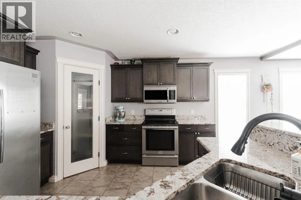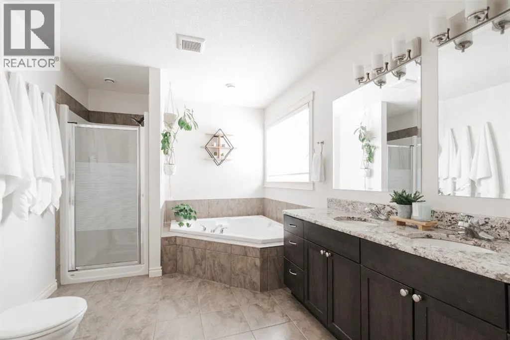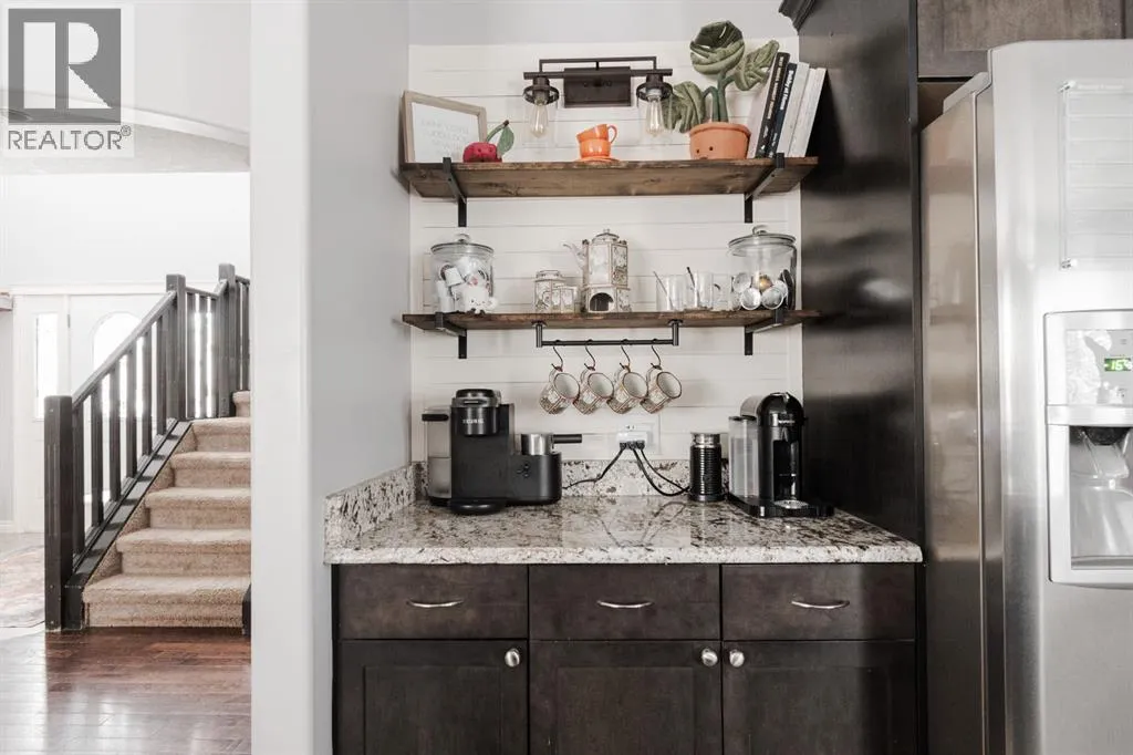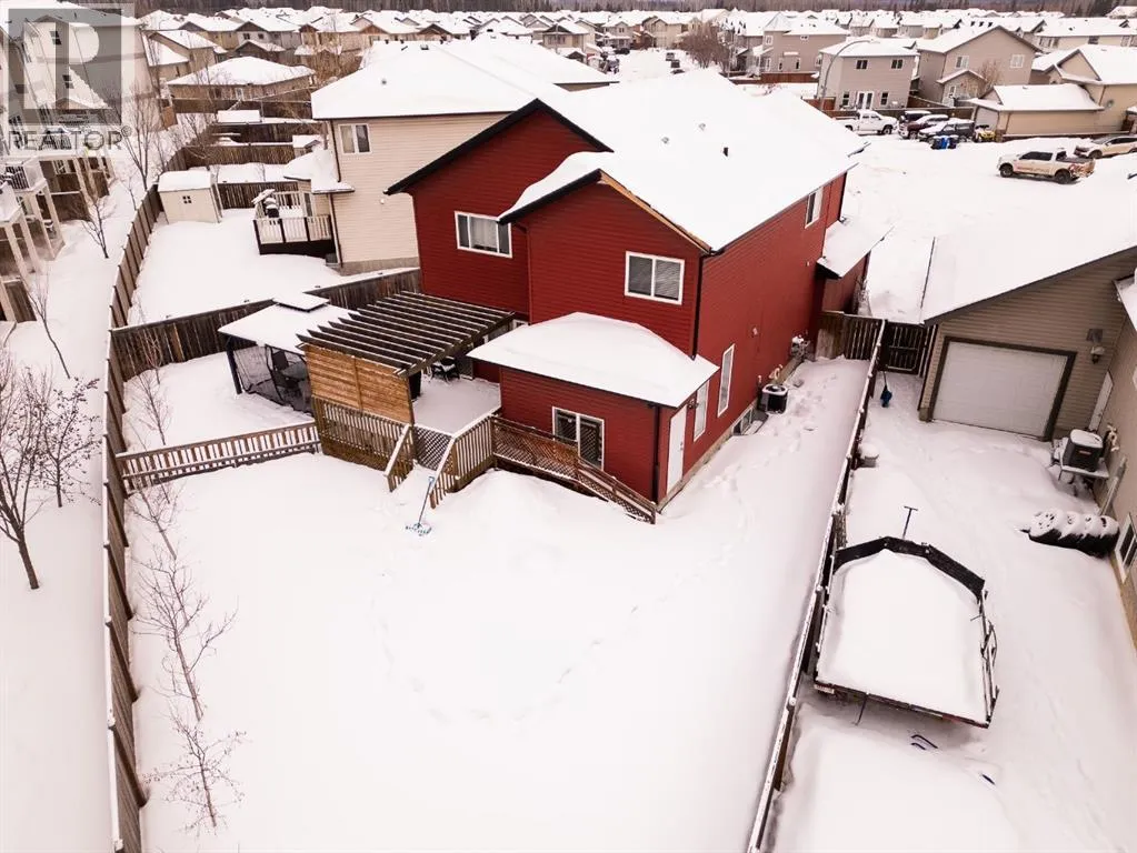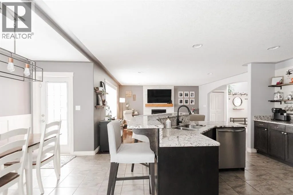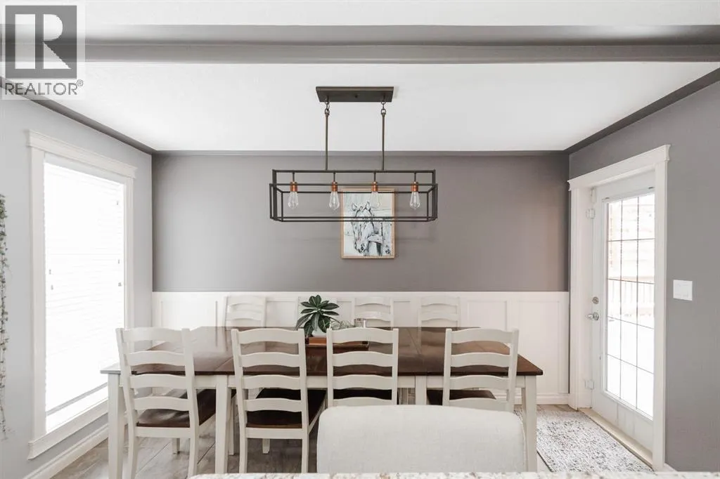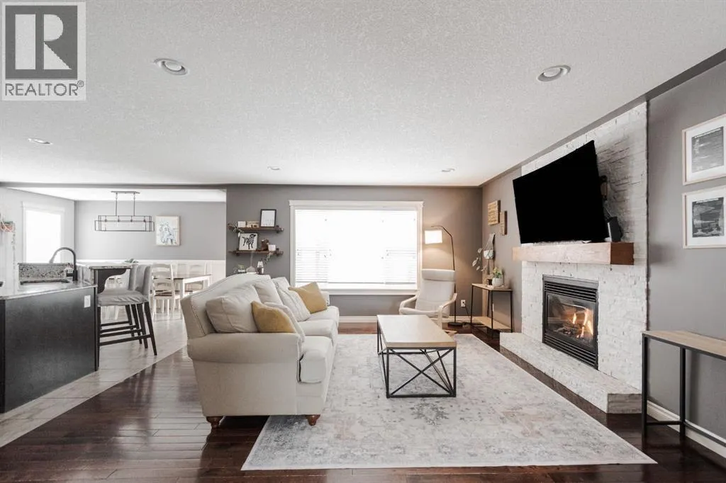 Welcome to 131 Chokecherry Place, a spacious and welcoming Timberlea home set on a generous 6,202 square foot pie lot with a backyard designed for connection, privacy, and everyday enjoyment. With farmhouse inspired modern updates throughout, this home offers a comfortable blend of character, function, and space in a layout that works beautifully for growing families.From the moment you arrive, the long driveway with parking for three vehicles and additional RV parking sets the tone for practicality. Stepping inside, the tiled entry welcomes you with a striking shiplap feature wall, built in shelving, crown mouldings, and a wagon wheel chandelier added in 2020 that immediately gives the home its charming farmhouse feel.The main living area features hardwood floors and a cozy gas fireplace framed by stone veneer and a wood beam feature also completed in 2020 when many updates were done. This space flows seamlessly into the kitchen and dining area, creating an inviting open concept environment for both daily living and entertaining. The kitchen is finished with granite countertops, an eat up island, black sprayer faucet, pantry storage, and a charming shiplap coffee bar with built in shelving. Wainscotting and an updated dining chandelier with Edison bulbs add to the character and warmth of the large space great for entertaining or nights in.The main floor also includes a convenient two piece bathroom with an updated light fixture and wood framed mirror. The laundry area is thoughtfully located off the garage mudroom and includes upper cabinets and a drying rod, making it both functional and efficient.Upstairs, you will find a large bonus room with a feature wall, perfect for movie nights or a second family space. The primary bedroom is spacious and includes a walk in closet and a five piece ensuite with dual sinks and a jetted tub. The bed frame and mounted nightstands in the primary bedroom are all included. The upper level is completed with updated finishes tha t tie the space together nicely, hosting two additional bedrooms and a four piece bathroom.The basement offers a flexible layout suited for a home gym, recreation space, or guest use. A four piece bathroom is included, along with cork flooring that provides warmth and moisture resistance for your home gym or entertaining space. A Murphy bed is included, along with multiple televisions that can stay, and built in speakers with a Sonos system, receiver included. This space also has a separate entrance into the backyard for easy indoor outdoor access.Outside, the large pie shaped backyard offers a mix of open space and privacy. With added privacy walls on the deck, planted trees, and the natural pie lot shape help create a peaceful setting. The gazebo stays, along with a gas line for the barbecue, a fire pit area, a two tiered deck, and a dedicated dog run. This yard has clearly been enjoyed and designed for making memories.Additional features include central air conditioning and an updated humidifier. (id:27476)