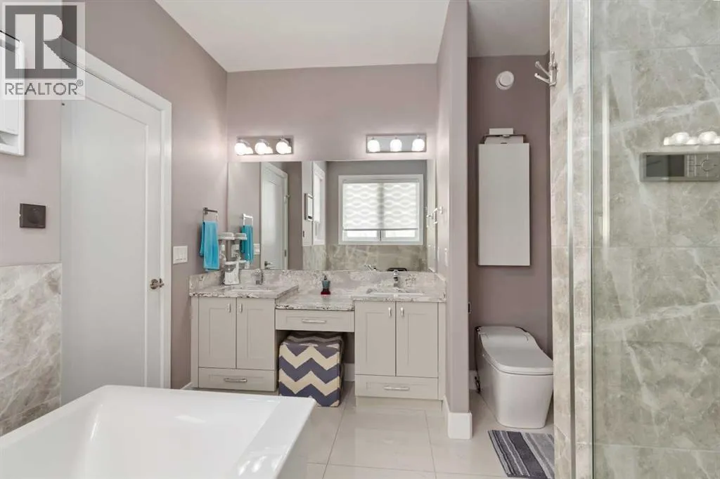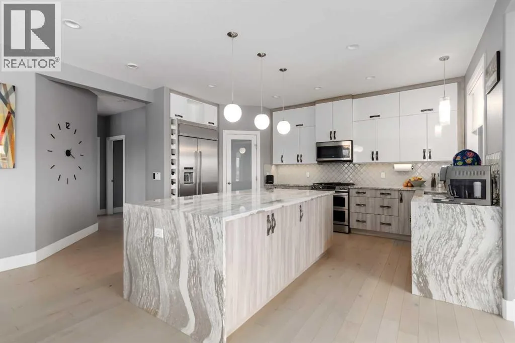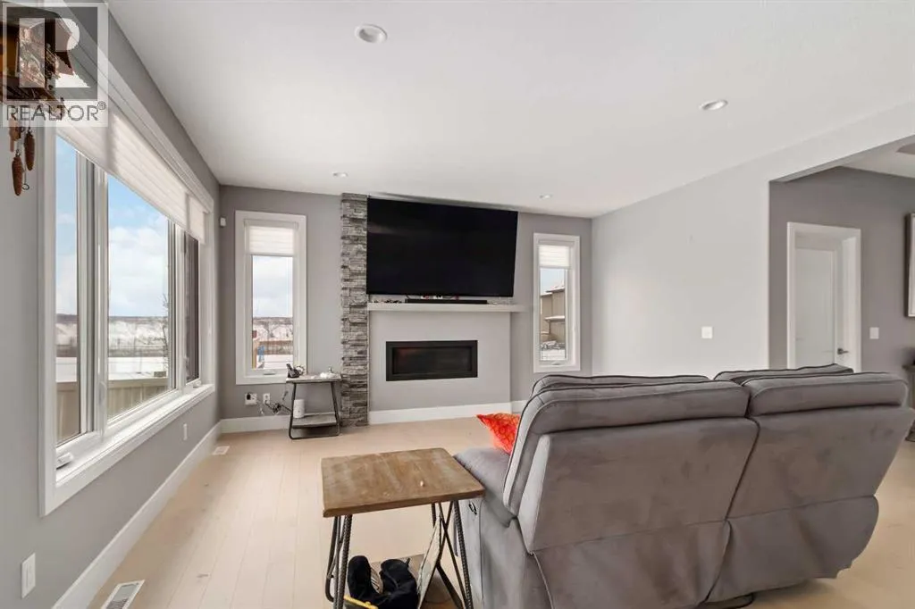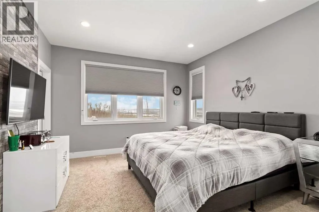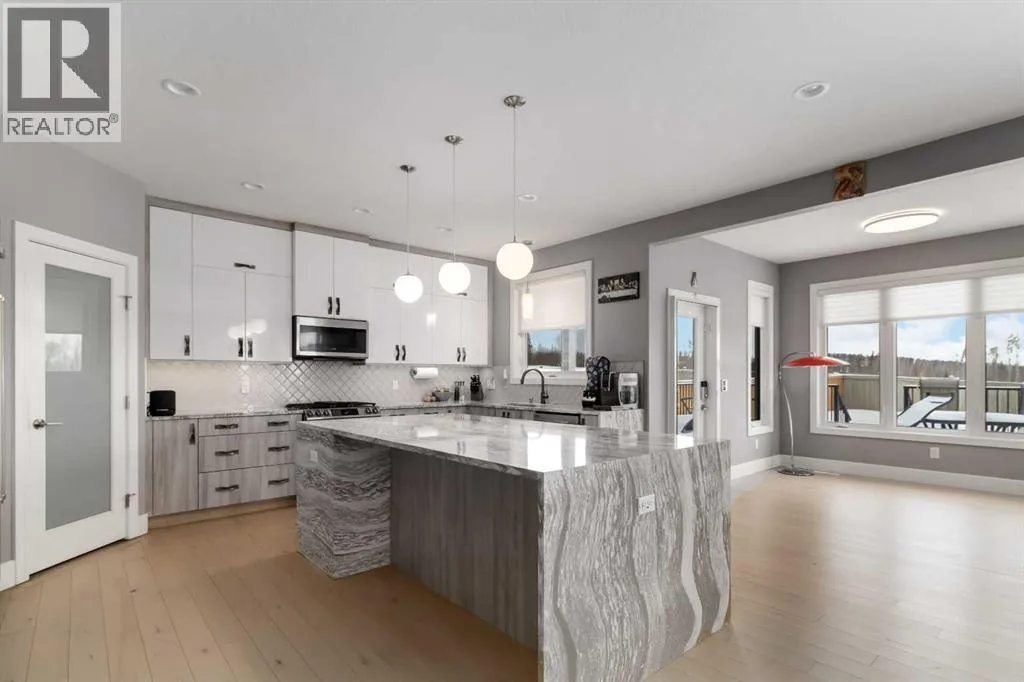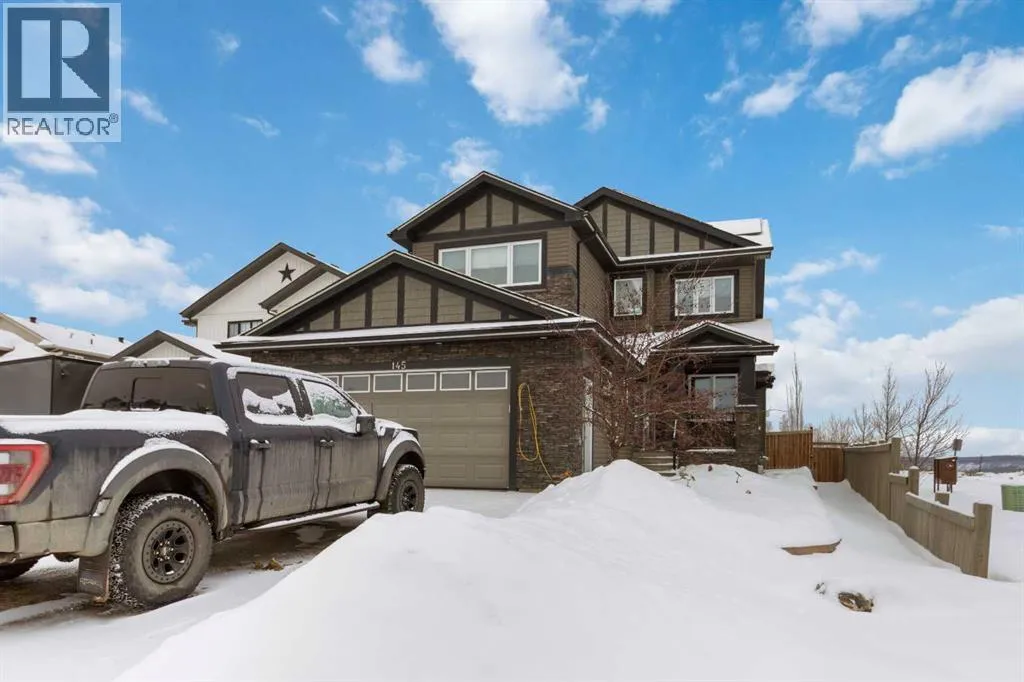 Welcome to your castle â 145 Cobblestone Bay.This exceptional residence showcases fine craftsmanship and attention to detail inside and out, complemented by exquisite, professionally designed landscaping befitting a home of this caliber. Once envisioned as an Oil Barons dream home, the property features premium appliances, upscale fixtures, and timeless finishes throughout.The remarkable kitchen is designed for both serious chefs and effortless entertaining, offering ample workspace, a large sit-up island, and a dramatic granite countertop with a striking waterfall edge. This versatile space seamlessly accommodates meal preparation and gatherings alike.The elegant dining room provides a refined setting for family dinners and hosting guests, featuring large windows and direct access to the rear deck - creating a bright and inviting atmosphere with generous room to entertain.The expansive living room may well be the heart of the home, complete with surround sound wiring, a cozy gas fireplace, and large rear-facing windows that overlook the deck and backyard. A private office or den, thoughtfully separated from the main living area, offers serene views of the river valley and front grounds - ideal for work or quiet retreat.Also on the main floor is a highly functional walk-through pantry and butlerâs kitchen that connects directly to the oversized 23â x 29â heated garage, adding both convenience and storage.Upstairs, a stunning bonus room with soaring vaulted ceilings and front-facing windows creates a truly special space for relaxation or recreation. The second floor also features three bedrooms, including the impressive primary suite with breathtaking views of the Athabasca River Valley. The five-piece ensuite delivers a spa-like experience with a luxurious soaker tub, double granite-topped vanity, and an elegant stand-up shower.Two additional generously sized bedrooms: each with unique features and views - along with a full bathroom and well-appointed upper-l evel laundry room complete this floor, all connected by a graceful winding staircase overlooking the main entry.The fully finished basement continues to impress. A spacious family room wired for sound sets the stage for the ultimate home theatre, while the stylish sit-up bar with fridge and sink is perfect for entertaining. The lower level also includes a fourth bedroom with a large closet, a full bathroom, and intelligently designed storage space.Additional Upgrades & Smart FeaturesBeyond the obvious aesthetics, most of the windows have been upgraded to triple pane glazing with Low E & Argon Gas This home has been extensively upgraded with a 20-panel photovoltaic (PV) solar system and a 200-amp exterior electrical panel, with capacity for outdoor features such as a hot tub or electric fireplace. Home also has a 5 zone sprinkler system. And there's more! This is a rare opportunity to own a truly distinguished home in and exceptional setting! (id:27476)