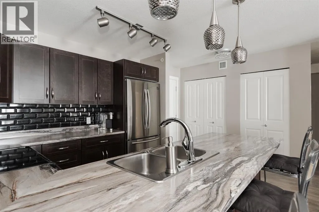 Welcome to 403-115 Denholm Gate, a bright and inviting, top floor, 2 bed, 2 bath unit in Longboat Landing. With 932 sq ft of sun-filled living space, this home features Luxury Vinyl Plank flooring in the main living areas, a modern kitchen with dark cabinetry, updated appliances and a cozy eat-up breakfast bar. With dual entry closets, a separate laundry room with extra storage, and your own underground heated parking stall (U65) you are sure to fall in love. Located close to walking trails, Keyano College, Syncrude Sport & Wellness Centre, shops, restaurants, and more, this home offers convenience in a fantastic setting. Schedule your private showing today! (id:27476)