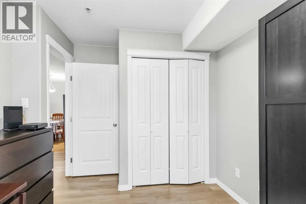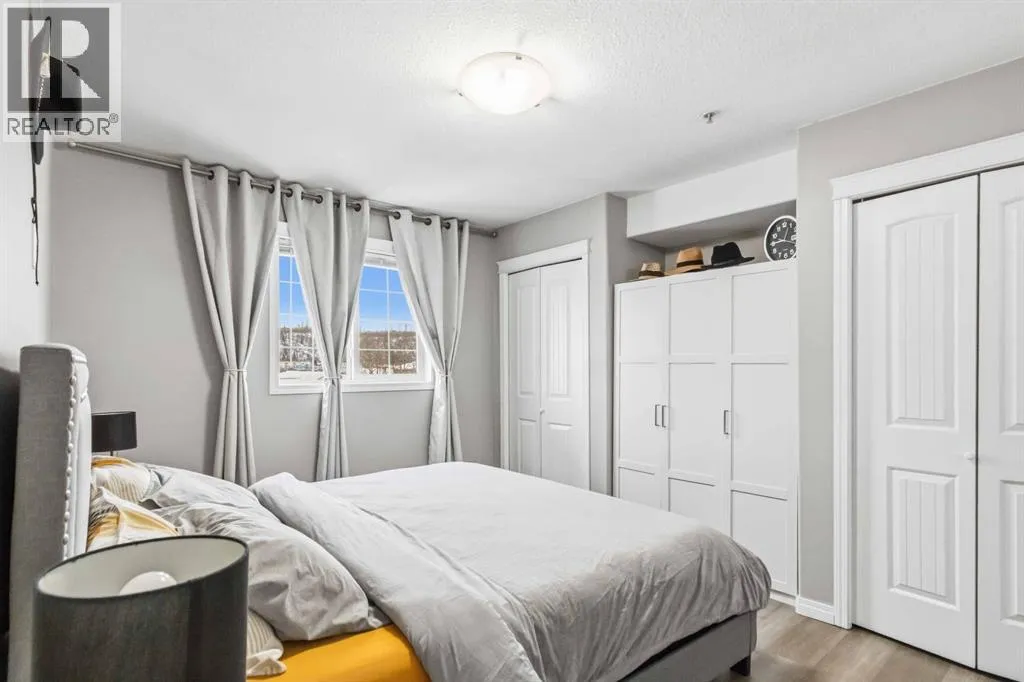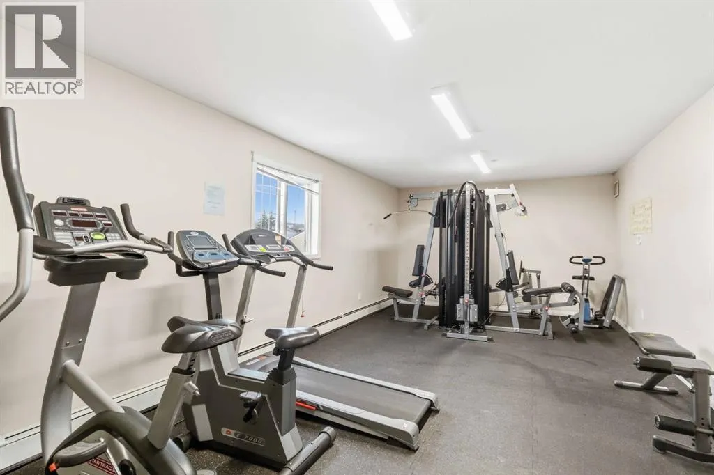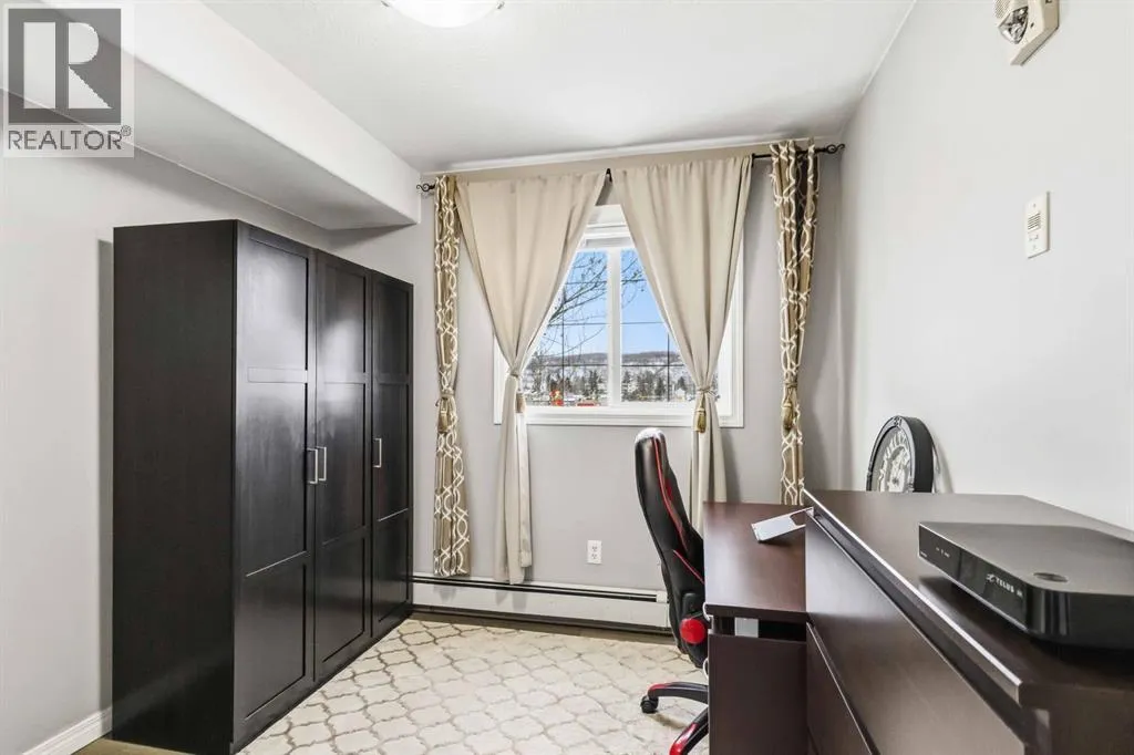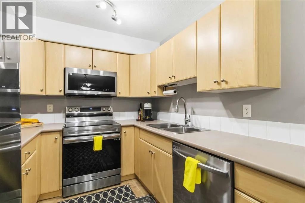 Welcome to this beautifully maintained 2 bedroom, 2 bathroom condo in Rundlestone Estates, a well managed and impeccably clean building centrally located downtown, just steps from shopping, restaurants, schools, walking trails, and more. This open concept unit is located on the same floor as the buildingâs gym, offering both convenience and accessibility. Inside, youâll find fresh neutral paint, no carpet, and brand new stainless steel appliances (2025), along with a new kitchen faucet and thoughtful touches throughout. The kitchen offers ample cabinetry, new appliances, and a convenient coffee station, while the dining area comfortably fits a six seat table (which can stay if desired). The spacious living room features a cozy corner fireplace and access to a private balcony. The primary bedroom includes two closets and a full ensuite, while the second bedroom is privately situated on the opposite side of the unit, adjacent to the second full bathroom perfect for guests or a home office. This unit also comes with one underground parking stall (#312) located just steps from the elevator, plus access to 40+ visitor parking stalls on both the north and south sides of the building. Condo fees include heat and water, and the unit can be sold partly furnished. This is a rare opportunity to own a move in ready condo that truly has it all. Book your showing today, this one wonât last. (id:27476)