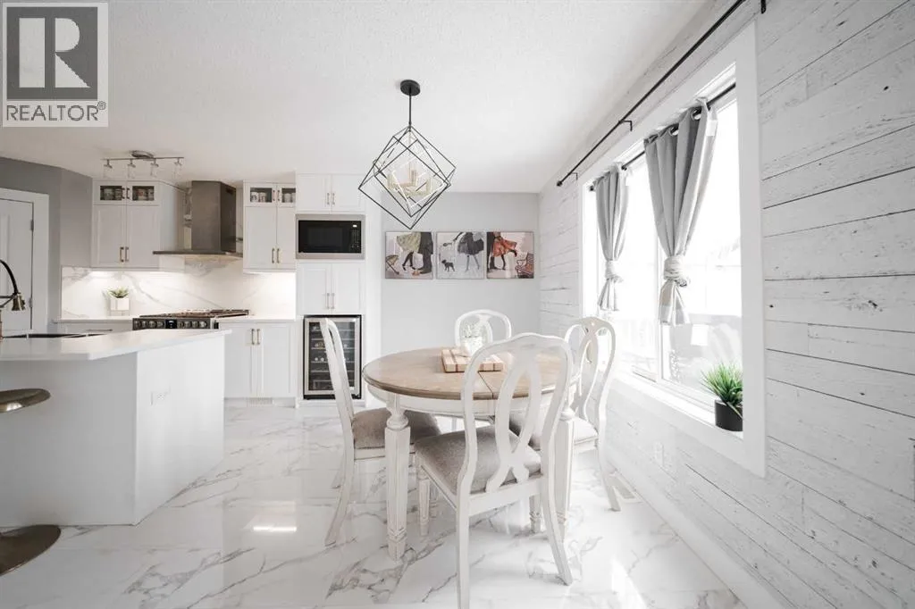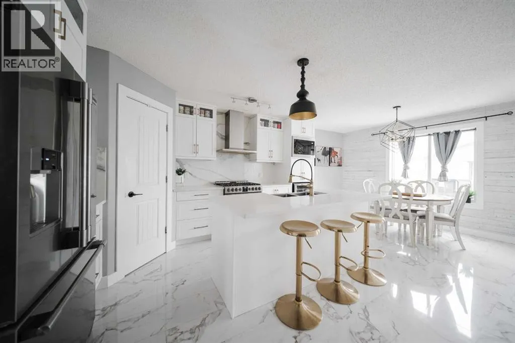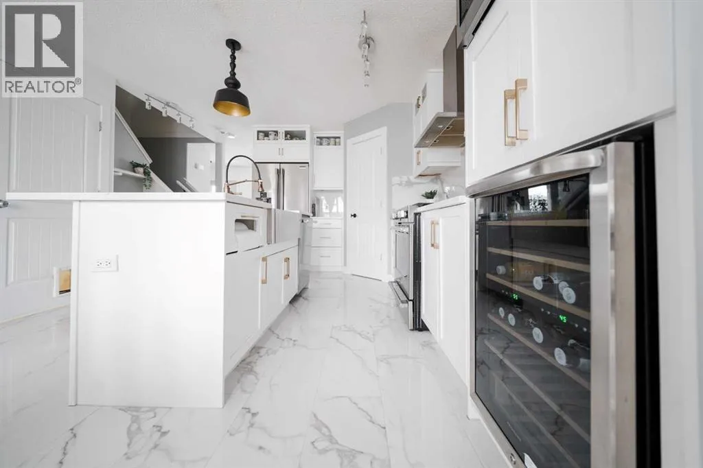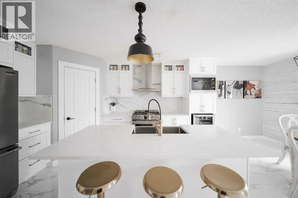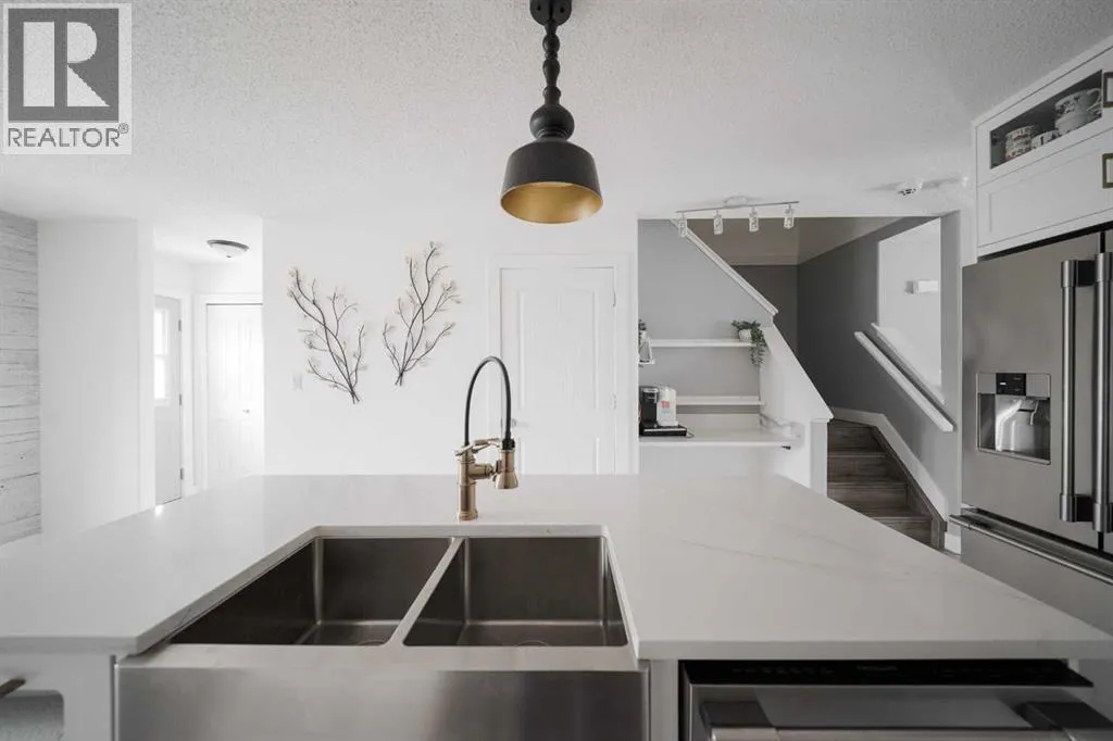 Welcome to 237 Sandstone Lane, where exceptional craftsmanship, thoughtful upgrades, and timeless design come together in one stunning Stone Creek home. Major exterior improvements include updated shingles, exterior doors, a newer deck, and a dedicated hot tub pad with wiring completed (permit approved). Step inside to a spacious front living room featuring modern laminate flooring and a striking feature wall, flowing seamlessly into a show-stopping white kitchen by Jos-Will Millwork. Built with solid maple doors, elegant gold hardware, under-cabinet lighting, glass-front uppers, and a massive 8-foot island topped with seamless quartz countertops, this chefâs kitchen is both beautiful and built to last. Upgraded Frigidaire Professional Series appliances (including a gas stove), luxury vinyl plank flooring, contemporary lighting, a coffee bar, and a built-in wine cooler complete the space. The main level also offers a stylish updated 2-piece bathroom and a spacious dining area accented by a chandelier overlooking the backyard. Upstairs youâll find new trim, new closet doors, three bedrooms, and two fully renovated bathrooms â all finished with matching cabinetry, quartz countertops, new toilets, mirrors, and luxury vinyl plank flooring for a cohesive high-end feel. The newly completed basement features a professionally finished California knockdown ceiling, cozy family room, spacious bedroom, full bathroom, and beautiful laminate flooring â perfect for guests or growing families. Outside, enjoy the private backyard oasis with a deck (2021) with privacy lattice, full fencing, tasteful landscaping with Aspen trees, interlocking brick, flower beds, an enclosed dog run with artificial turf, and a detached double garage (2022) with rear alley access. Additional highlights include central A/C and a prime location close to schools, shopping, and all Stone Creek amenities. Move-in ready luxury â this home truly checks every box! (id:27476)