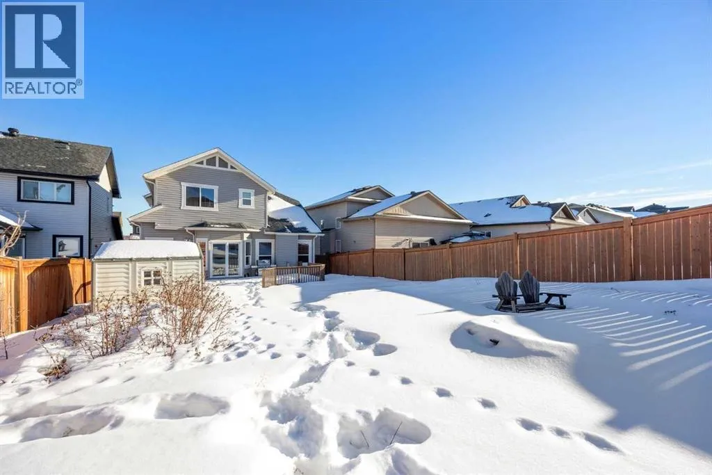 Step into a home designed for both everyday comfort and unforgettable moments, where soaring ceilings, timeless finishes, and thoughtfully designed spaces create the perfect backdrop for family living and entertaining. This beautiful 2-storey home in Eagle Ridge sits on a large 7,487sqft lot and welcomes you with a very large front foyer that sets the tone for the home, flowing into a stunning formal dining room featuring elegant wainscoting, vaulted ceilings, and rich hardwood floors. The main floor living room is warm and inviting with hardwood flooring and a gas fireplace, creating the ideal place to unwind at the end of the day. The beautiful kitchen is truly the heart of the home, finished with granite countertops, tile floors, stainless steel appliances including a gas stove, a brand-new microwave (Feb 2026), a new fridge (Dec 2025), and an upgraded dishwasher (2023), plus a large island perfect for gathering. Just off the kitchen is an oversized walk-in pantry with a secondary fridge that stays, along with a recycling bin cupboard across from the pantry that is also included. The main floor also offers a convenient half bathroom and a functional laundry/mud room with 3-year-old washer and dryer and direct access to the double front attached garage with high ceilings. Upstairs, you will find 3 spacious bedrooms, 2 full bathrooms, and a versatile bonus room ideal for movie nights, kidsâ play space, or a quiet retreat. The primary bedroom offers a large walk-in closet and an ensuite featuring dual sinks, granite countertops, tile flooring, and a tub/shower combo, while the secondary full bathroom upstairs also includes granite countertops and a tub/shower combo. The fully developed basement is built for entertainment and flexibility, featuring a large rec room complete with a dart board, movie chairs, projector, and screen (all included), along with a bedroom, an ensuite with shower, a den with a sink, and large under-stair storage. Additional highlights includ e central air conditioning (2021) and a smart thermostat that stays with the property. Outside, enjoy a professionally landscaped backyard with multiple areas to relax and entertain, a large back deck with gas BBQ hookup, a fully fenced yard, garden shed, built-in firepit area with paving stones, garden beds, and direct backing onto a walking path/greenspace. Located in the highly desirable Eagle Ridge community, residents enjoy access to extensive trail systems including the nearby Birchwood Trails, parks, schools, and vibrant commercial amenities including shopping, restaurants, services, and the movie theatre, along with recreation, fitness, and family-friendly activities all within easy reach. This high-quality home won't last long, so book your showing today! (id:27476)