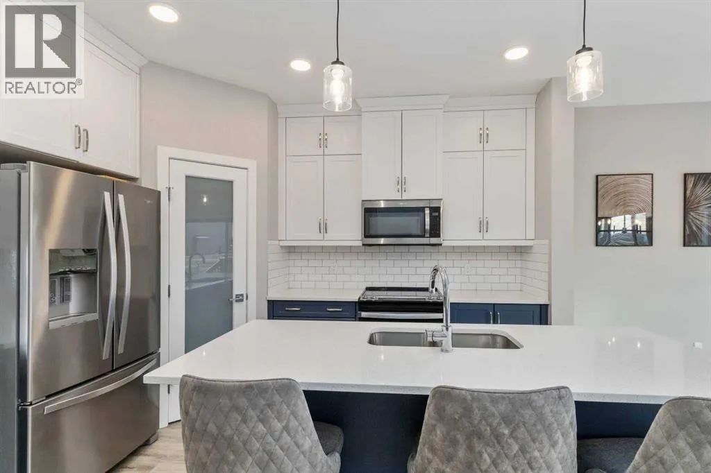 Welcome to 113 Hodgins Avenue, located in Fort McMurrayâs only Golf subdivision, perfect for those who love outdoor play on quads, skidoos, and more. Experience the perfect blend of modern sophistication and leisure in Henning Ridge, facing a Greenspace and future park area. Built by Qualico Developmentsâa trusted name in Fort McMurray for over 20 yearsâthis just like new 1,552 sq. ft. "Alex II" model features 3 bedrooms and 3 bathrooms, and the stunning modern color palette and a remaining 8 years Alberta New Home Warranty for total peace of mind, plus a fully fenced and landscaped yard and deck completed in 2025. The open-concept main floor is designed for entertaining, boasting luxury vinyl plank flooring and a chef-inspired kitchen. Youâll love the quartz countertops, white upper cabinetry, the stylish navy-blue island, the corner pantry, and the high-end 4-piece black stainless appliance package. The large island with an eat-up breakfast bar flows seamlessly into the bright great room and dining area. In addition, you have a built-in coffee bar. Upstairs, the primary bedroom features a spacious walk-in closet, a private ensuite, and panoramic views. There are 2 additional bedrooms, a full main bath, a dedicated laundry room, and a quaint landing area for a desk to complete the level. Outside, the home is a turnkey with front and rear landscaping fully fenced, completed, and a double concrete driveway. The basement is undeveloped but is designed to have a large family room, full bathroom, bedroom, and has the ability for a future suite with additional rough-in plumbing and a separate entrance. In addition, this home offers hot water on demand, custom blinds installed, and an insulated and drywalled attached garage with direct access to your home. Sellers have stated they loved living in the Community of Henning Ridge, a close-knit community of people who love the outdoors and quick access to the airport, Vista Ridge ski hill, and only minutes from the future Hom e Depot and other amenities. This community offers site, city, and school bus access seconds from your front door. Call today to be part of this awesome community! (id:27476)
